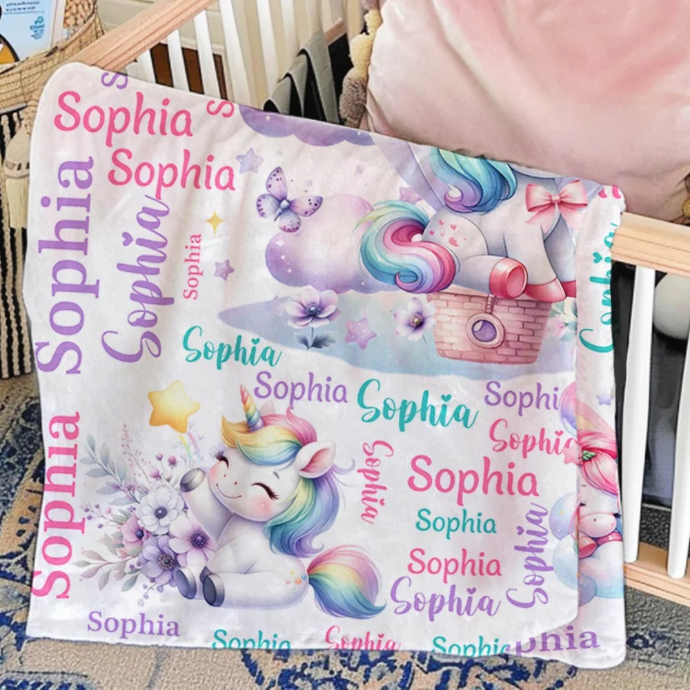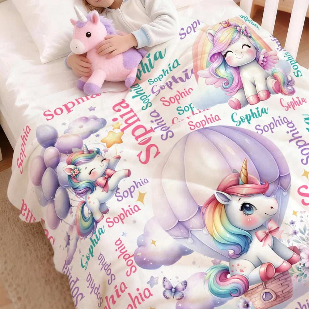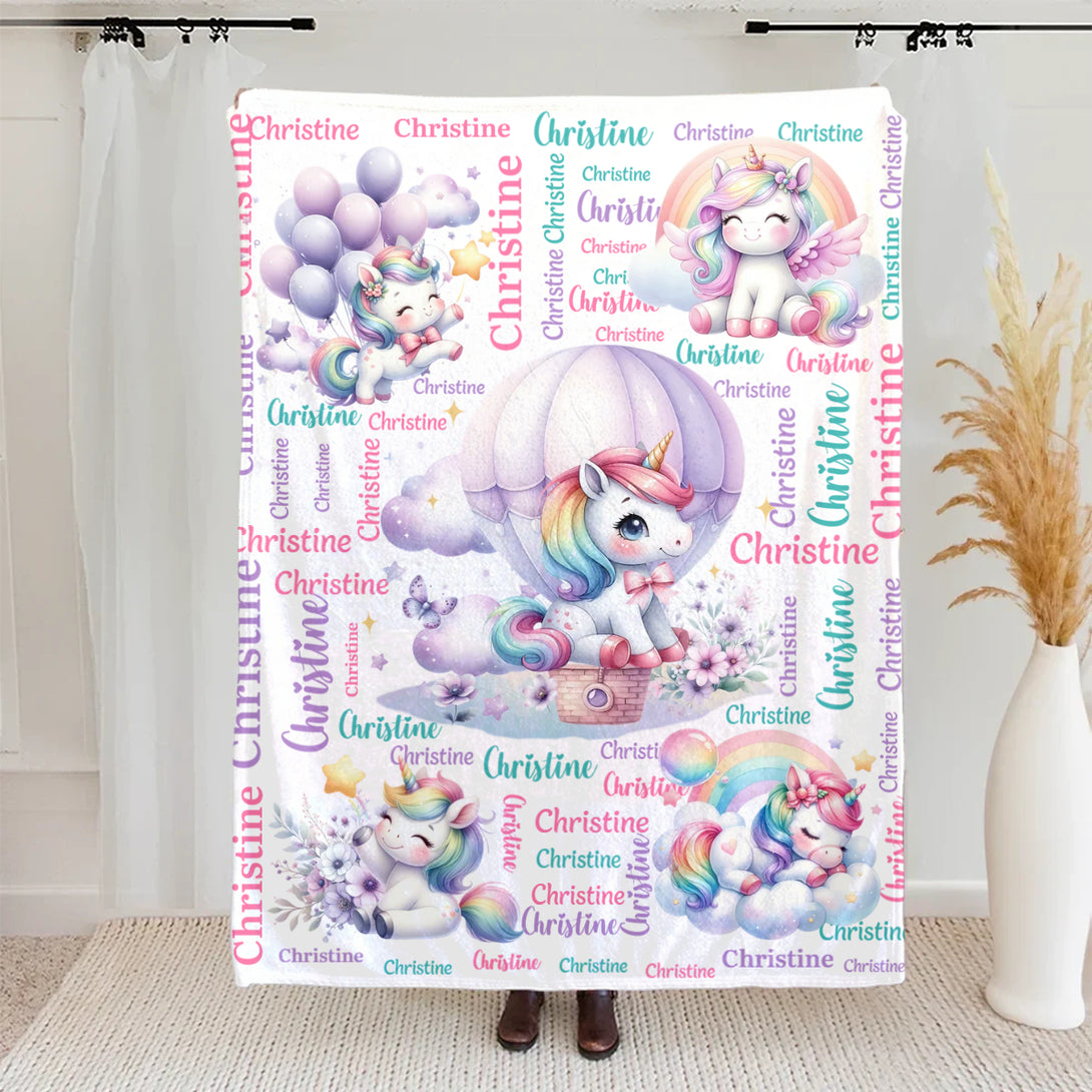 Personalized Cute Stars Rainbow Fantasy Unicorn Soft Throw Blanket with Name