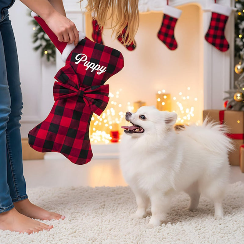🎄 Still wondering how to add a touch of Christmas ritual to your beloved pets’ holiday? This bone-shaped Christmas stocking is absolutely your top choice for making them part of the festive fun.