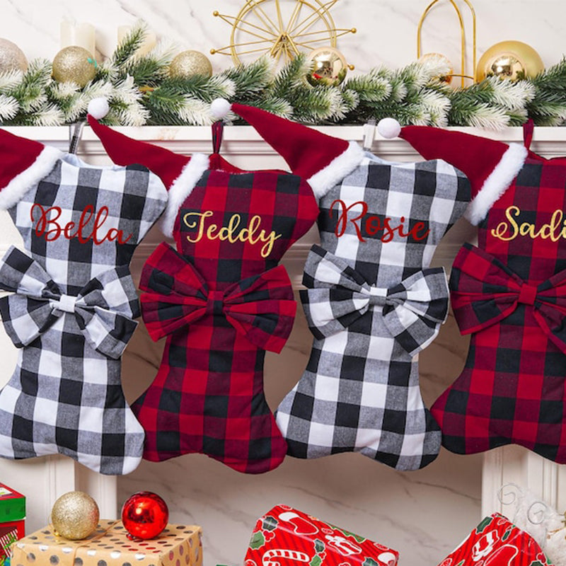 🎀 Crafted from classic plaid fabric, this stocking is elevated by a large bow decoration that adds extra delicacy and cuteness. To top it off, the Santa hat design at the upper part brings an abundance of Christmas cheer, instantly getting your space into the holiday spirit.