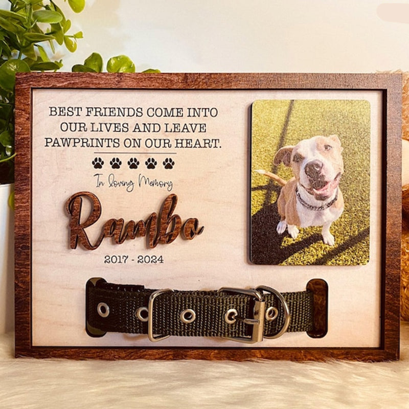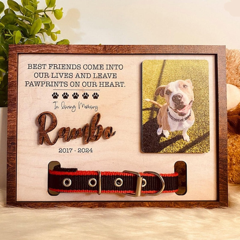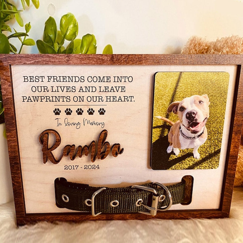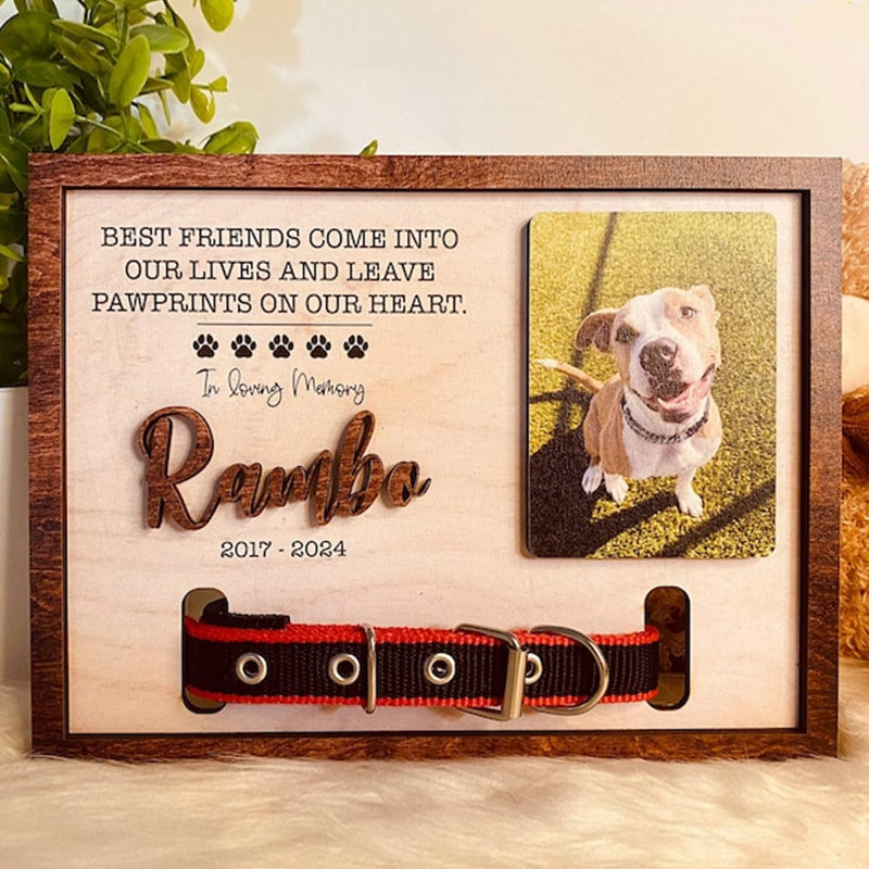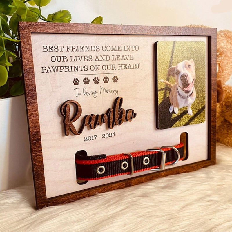 Personalized Dog Memorial Wood Frame With Collar Holder,, Dog Memorial Gifts
