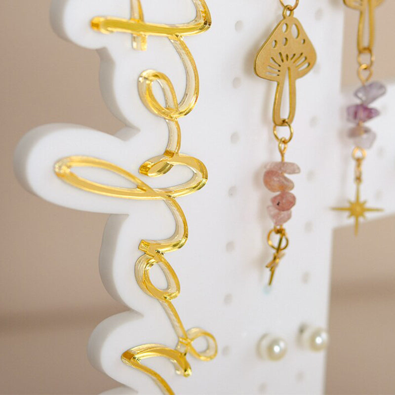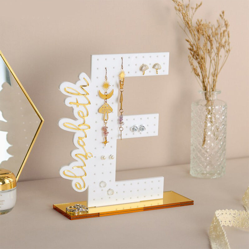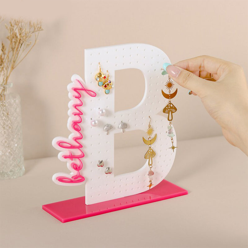 Looking for the perfect gift for a special girl or woman in your life? Our personalized acrylic earring holder is a wonderful choice! This unique earring display not only showcases her beautiful earrings but also keeps them organized and easily accessible.