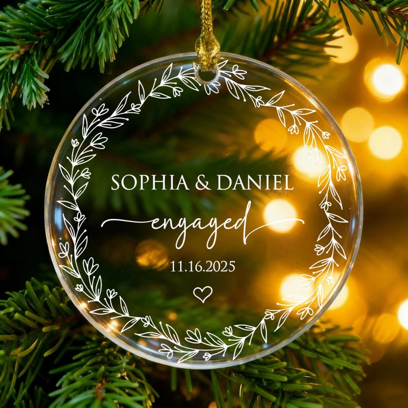 Personalized Engaged Ornament 2025,Wedding Keepsake Ornament,Engagement Ornament with Names & Date,Engaged Gift,Newlywed Gift For Couple