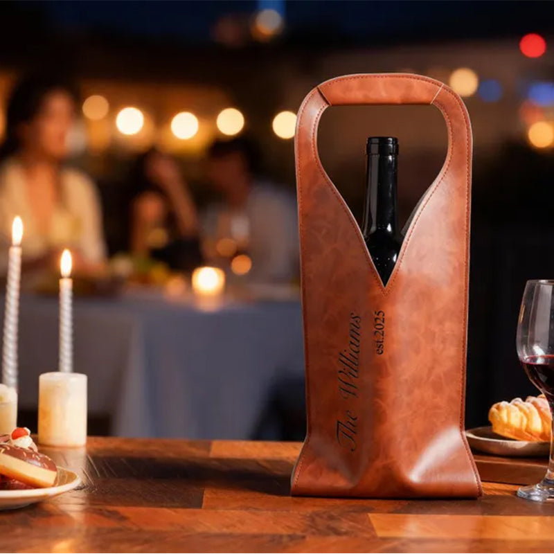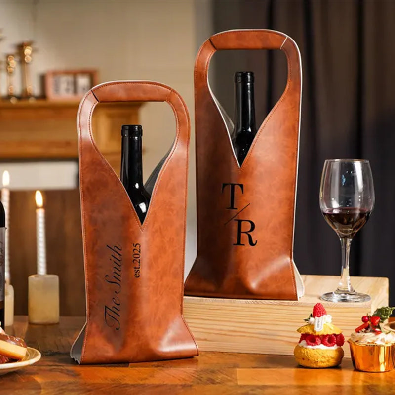 Elevate every celebration with our Personalized Engraved Wine Tote Bag! This elegant Wine Caddy combines functionality with sophisticated style, making it the perfect Leather Wine Tote for wine enthusiasts. Whether as thoughtful Gifts For Wine Lovers, a memorable Housewarming Gift, elegant Corporate Gifts, or a cherished Wedding Gift, this beautifully crafted tote adds a personal touch to any occasion while keeping your favorite bottles secure and stylishly presented.