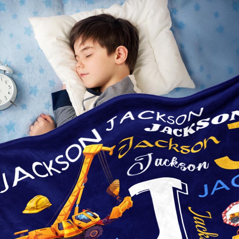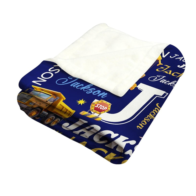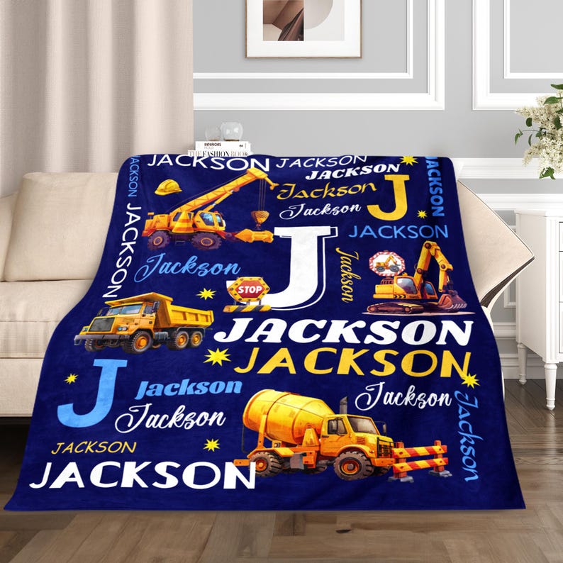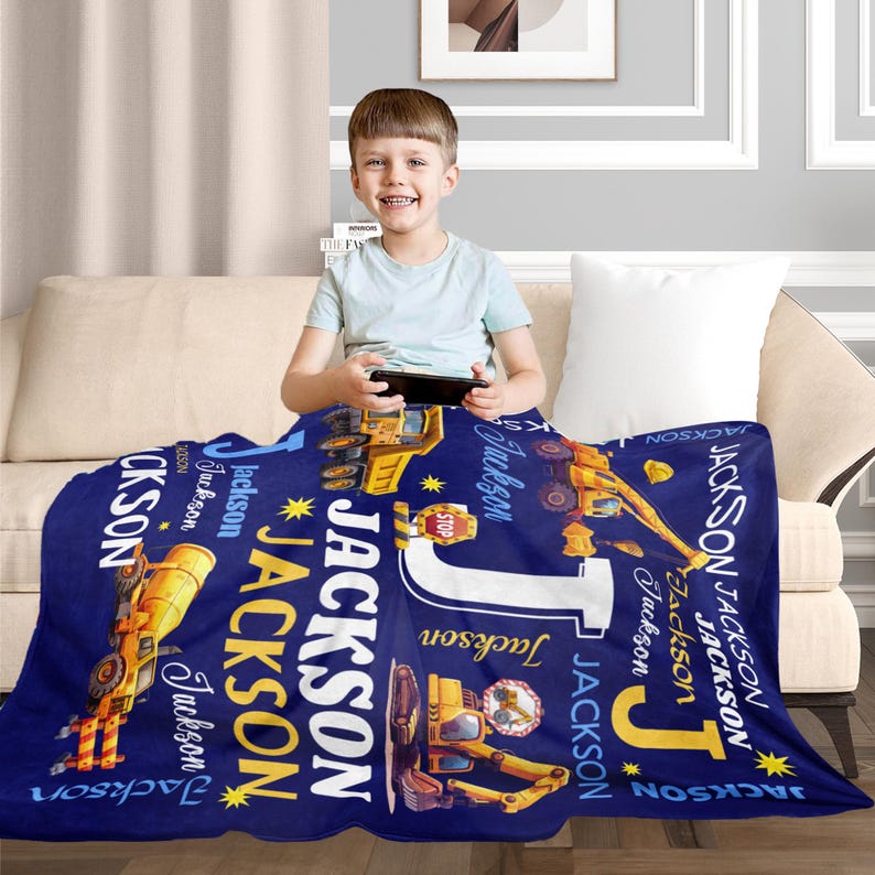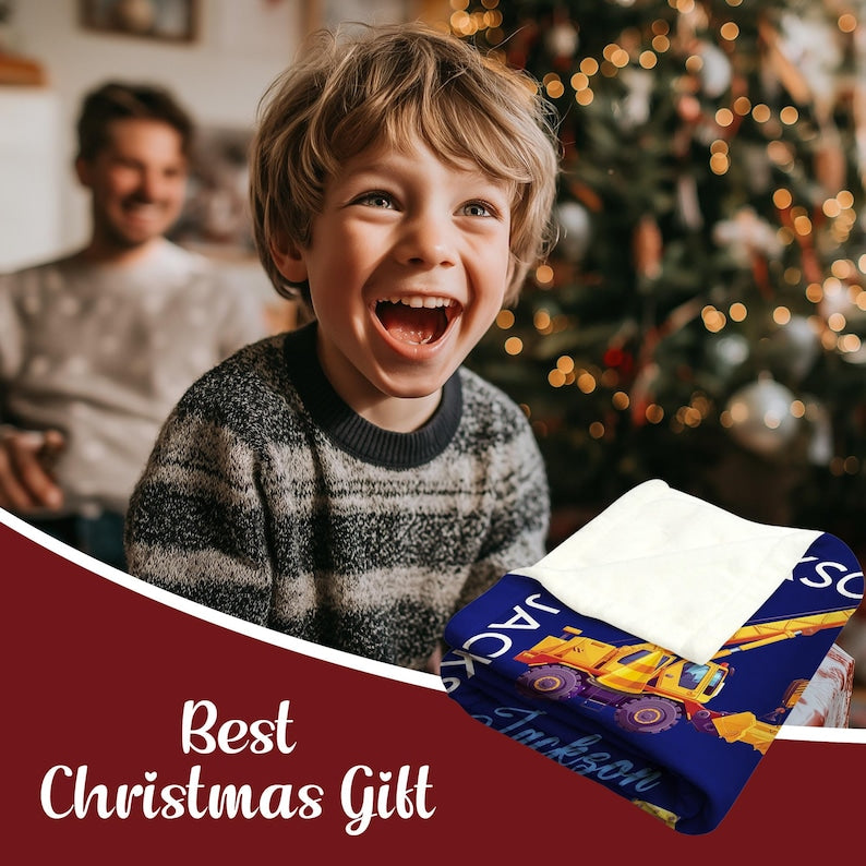 Personalized Excavator Name Blanket for Kids – Custom Construction Truck Blanket