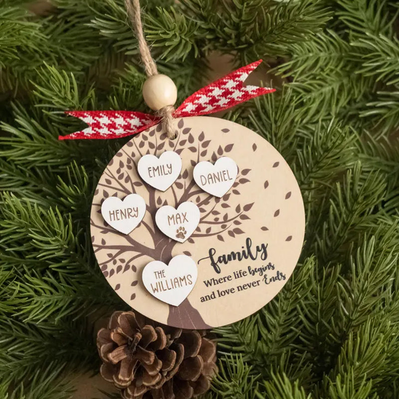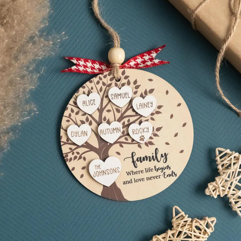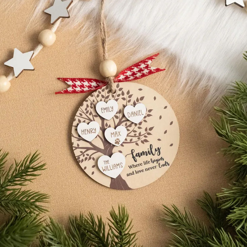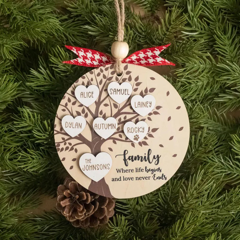 Personalized Family Tree Ornament 2025, Custom Family With Pet Ornament