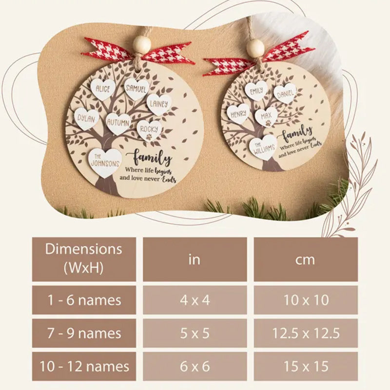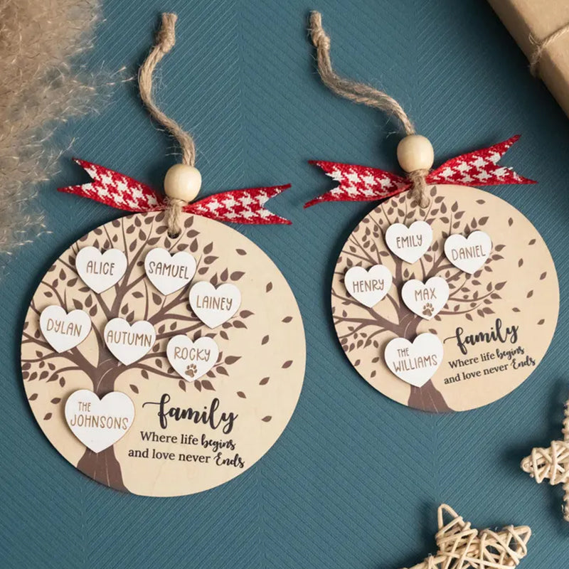 Celebrate the joy of family with our Personalized Family Tree Ornament. This charming wood ornament adds a heartfelt touch to your Christmas decor, making it the perfect family gift. Customize it for a unique holiday decoration that becomes a cherished keepsake for years to come. A beautiful addition to your Xmas decorations!