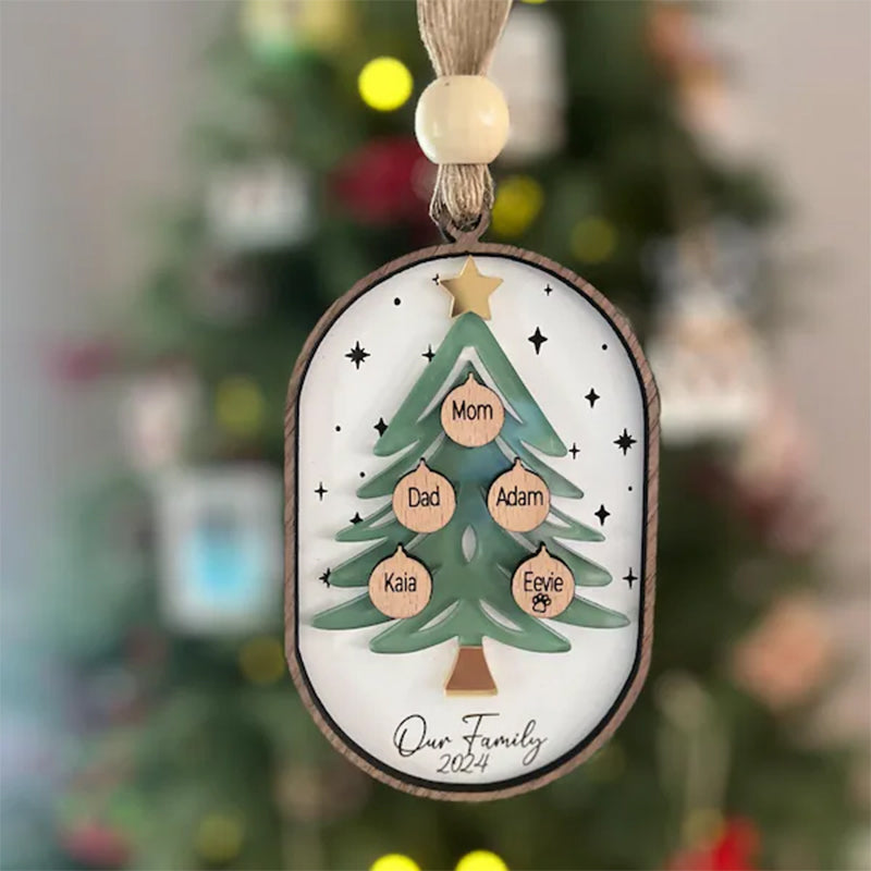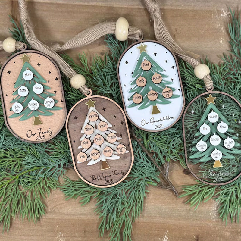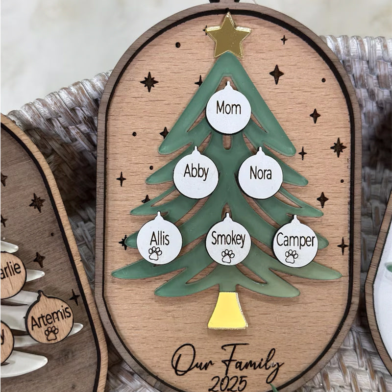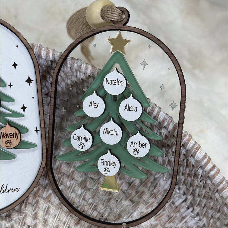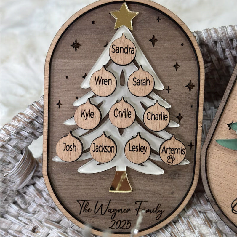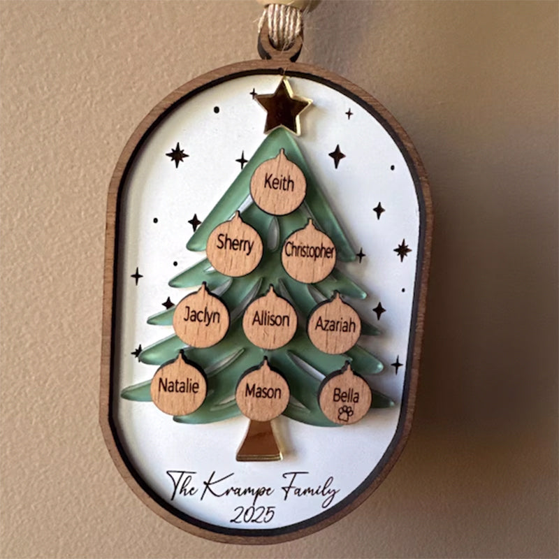 • Commemorate your family with this beautiful family tree ornament. This lovely handmade ornament is the perfect remembrance of your family this year. Each ornament is created with meticulous attention to detail, ensuring durability and longevity. Personalizing the text adds an extra layer of sentimentality to this keepsake. This ornament is created from high quality materials to last as a keepsake momento each time it is placed on the tree.