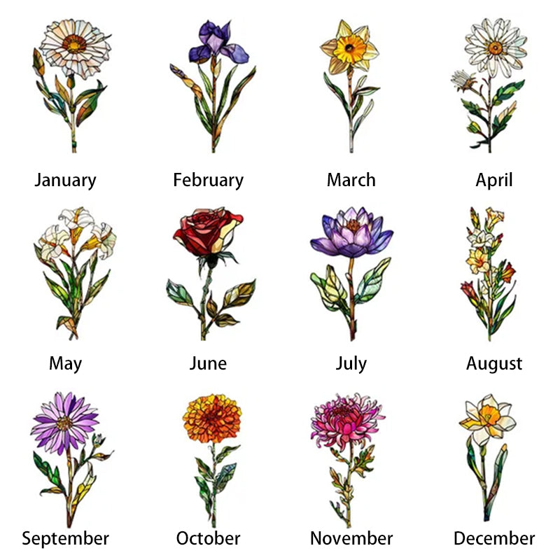 Feature: Durable, Non-fading, Easy to Install, Vertical Ornament, Stained Glass Style, Birth Flower Design