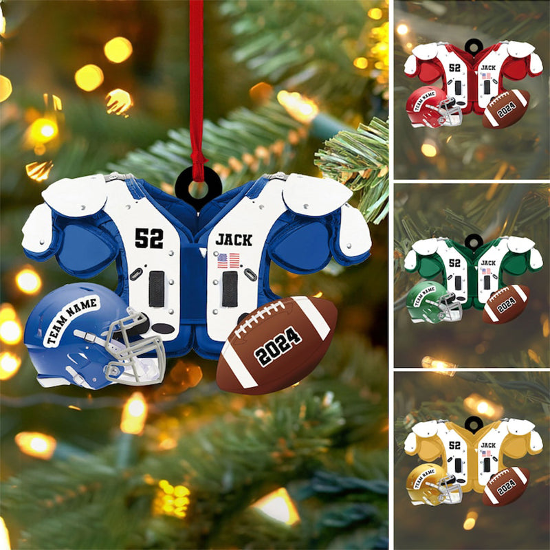 Personalized Football American Christmas Ornament, Custom Name Ornament, Football Vest Car Ornament, Flat 2D Ornament, Gift for Boyfriend