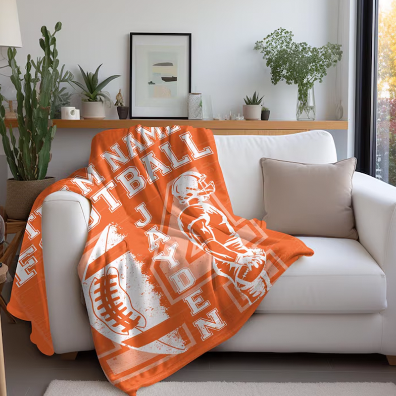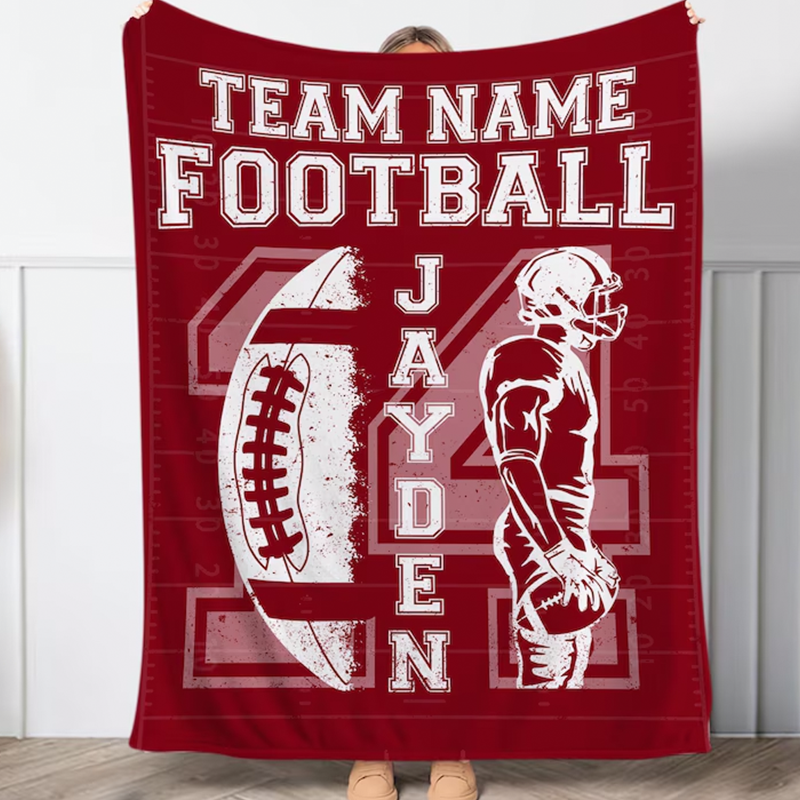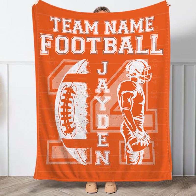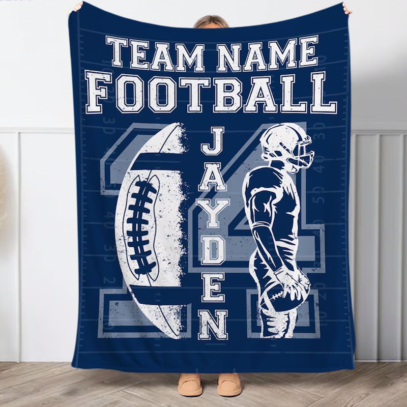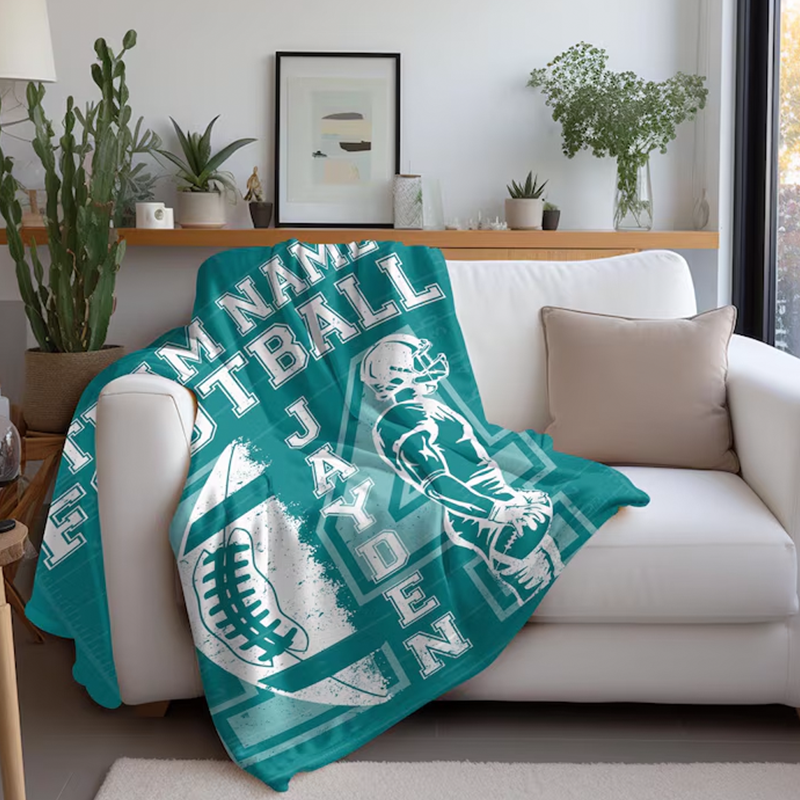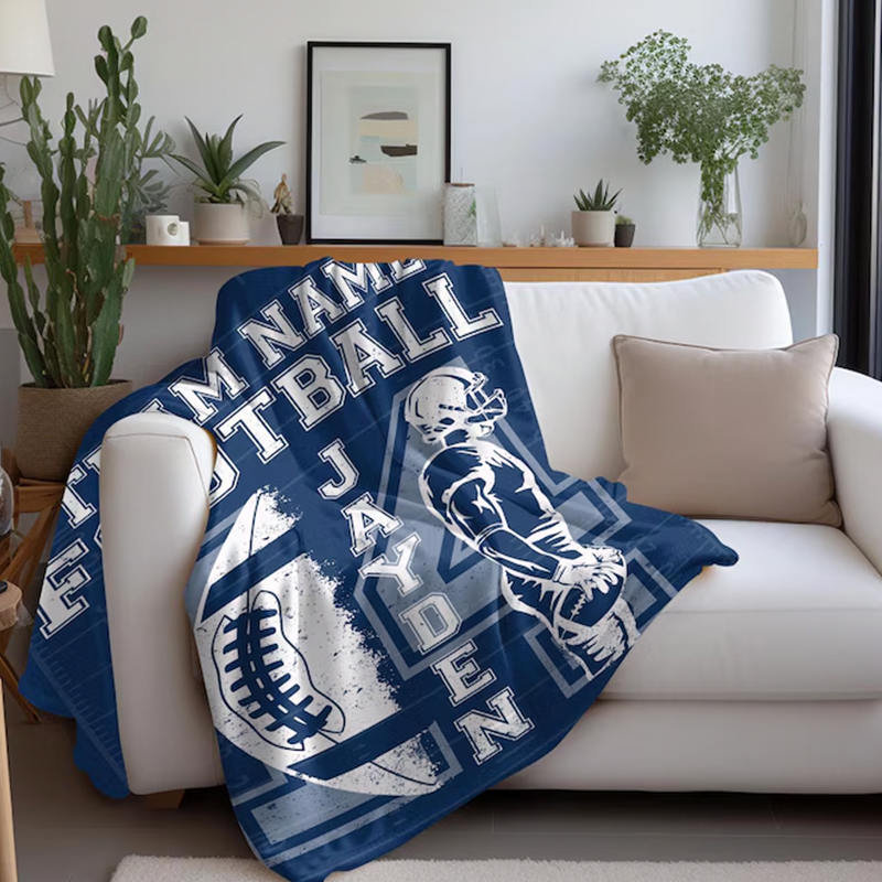 Personalized Football Blanket, Custom Name and Number for Football Player