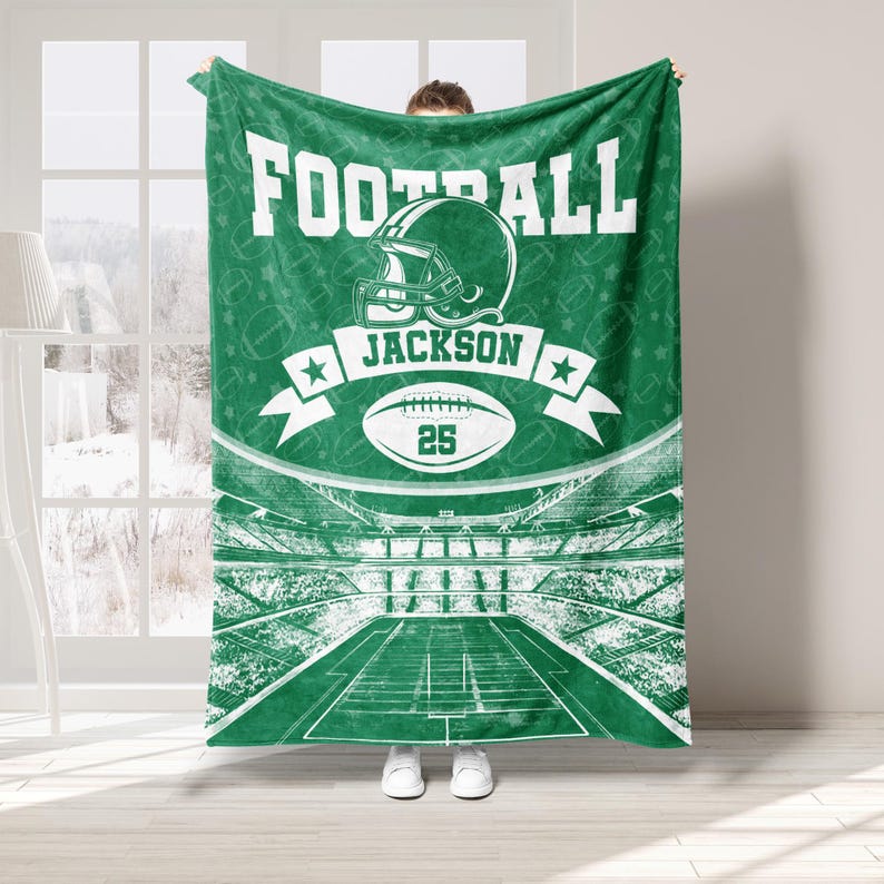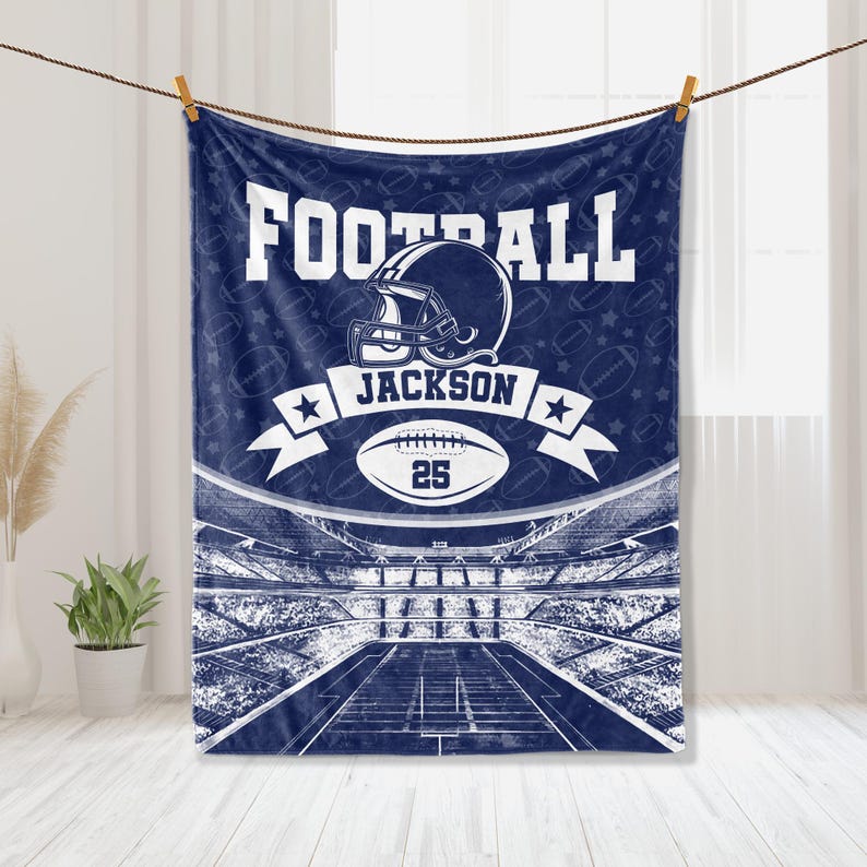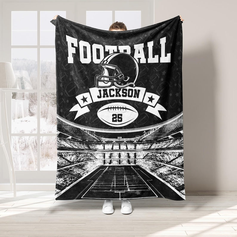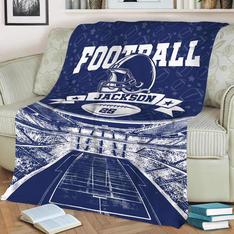 Personalized Football Blanket, Custom Name Number Football Player Blankets