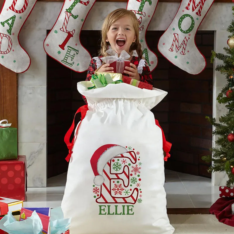A CHEERY GIFT: Ideal for all kids—or kids at heart—at Christmas, this personalized oversized gift bag is sure to be the first present they want to open.