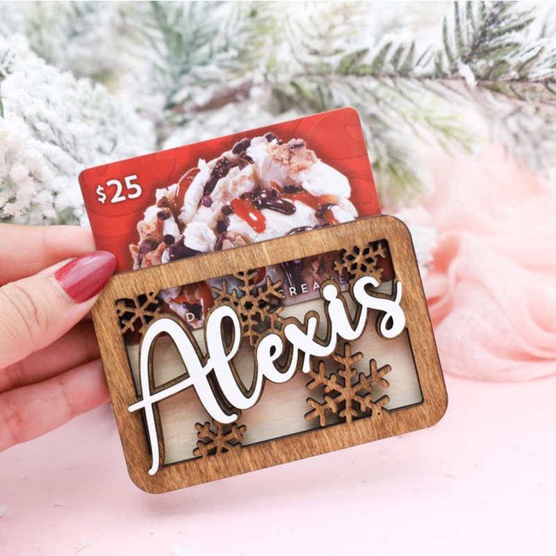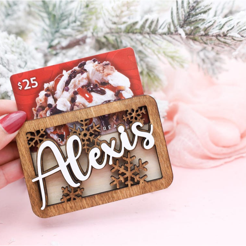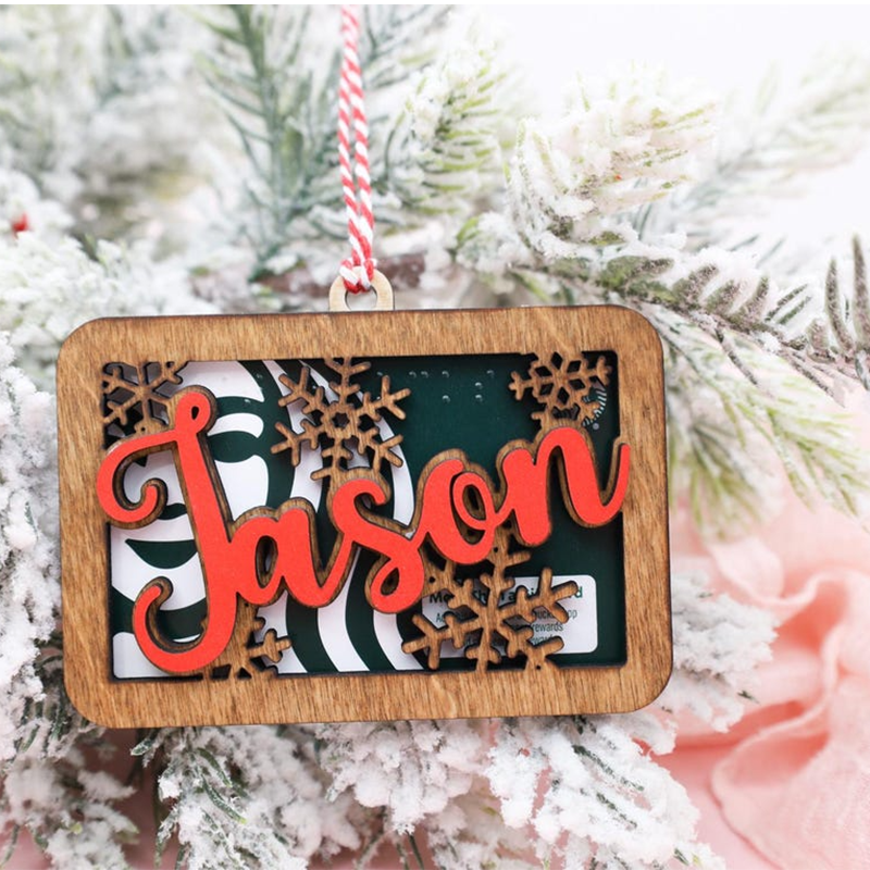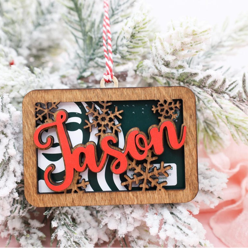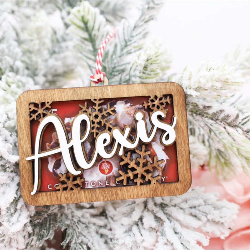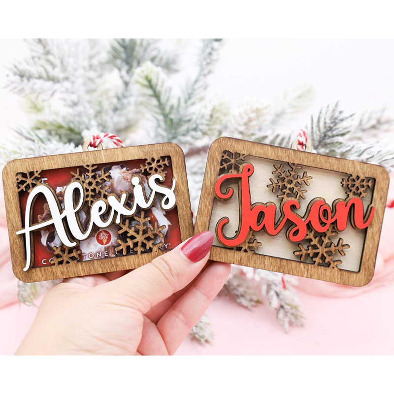 These custom name ornaments are laser-cut from high-quality acrylic and can be paired with either a colored acrylic or painted wooden nameplate. The snowflake pattern adds the perfect Christmas touch, making them both a gift and a keepsake for years to come.