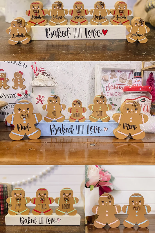 Gingerbread Family Sign, Christmas Home Decor, Personalized Gingerbread Family