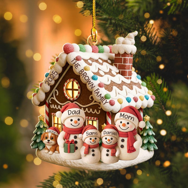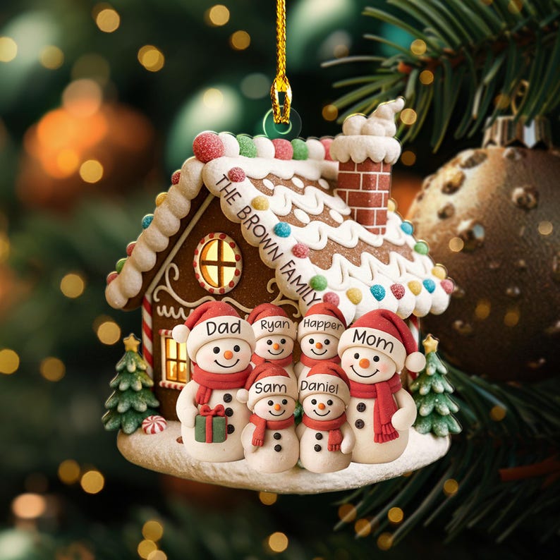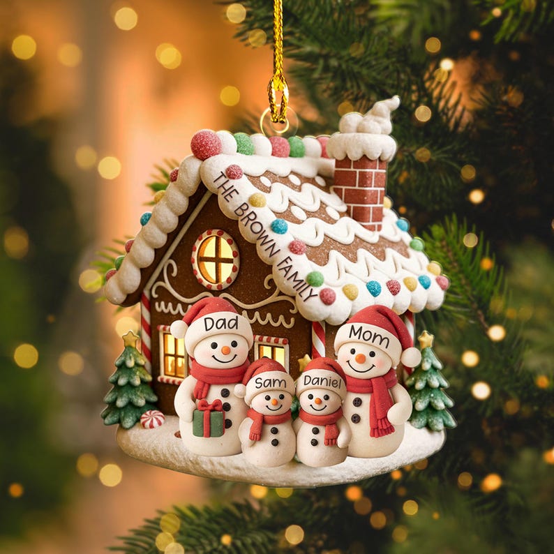 Personalized Gingerbread House Ornament, Custom Snowman Family Gift