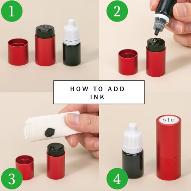 2. The stamp itself has built-in ink, and the box set contains an extra 5ml ink.