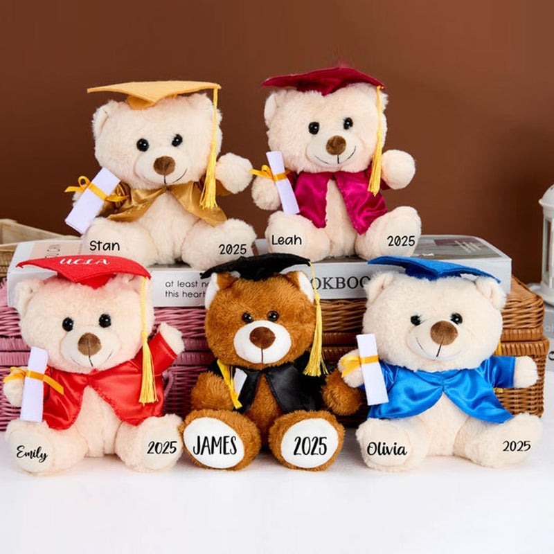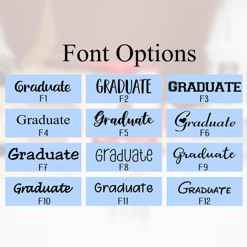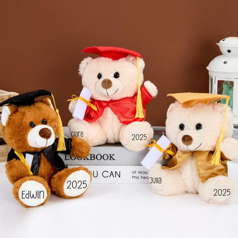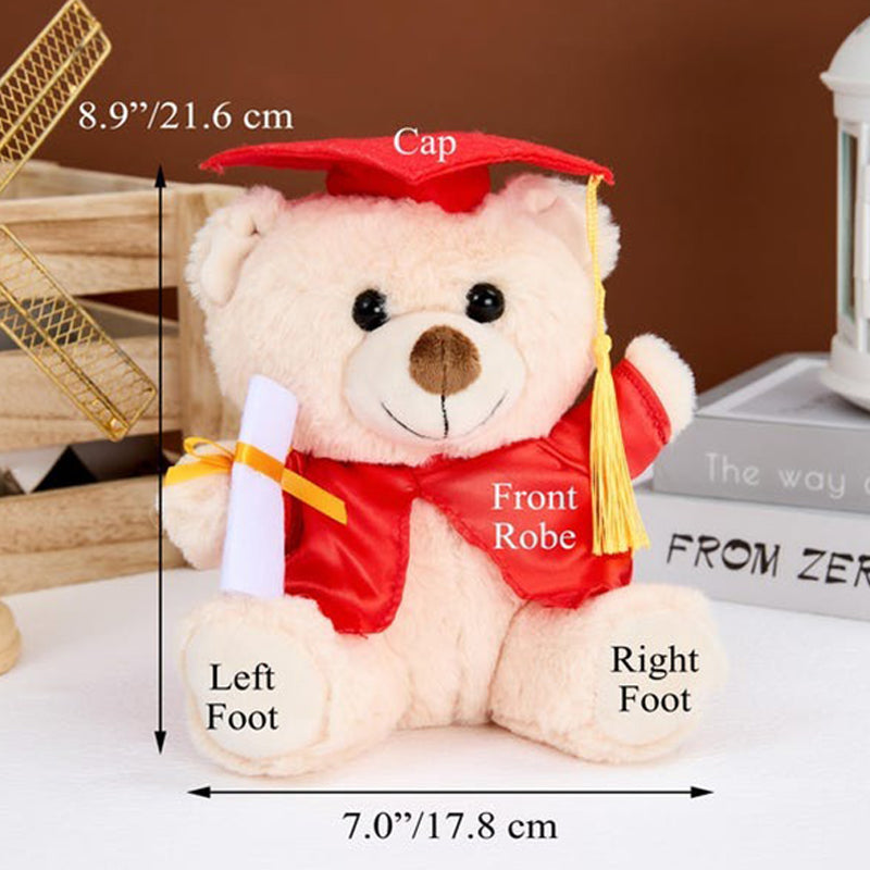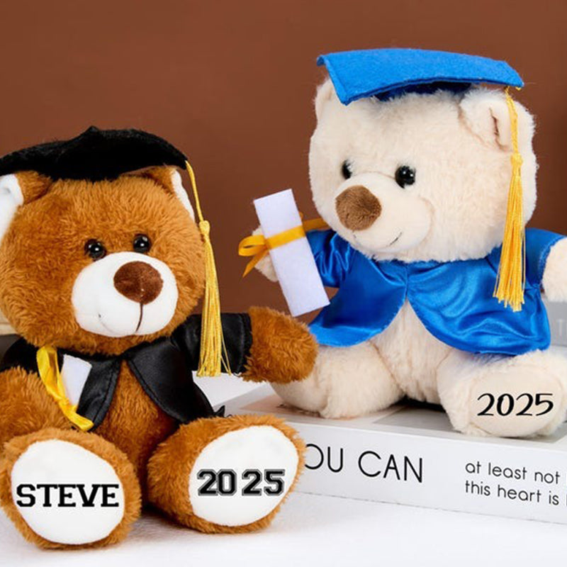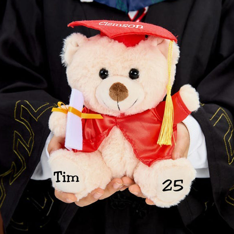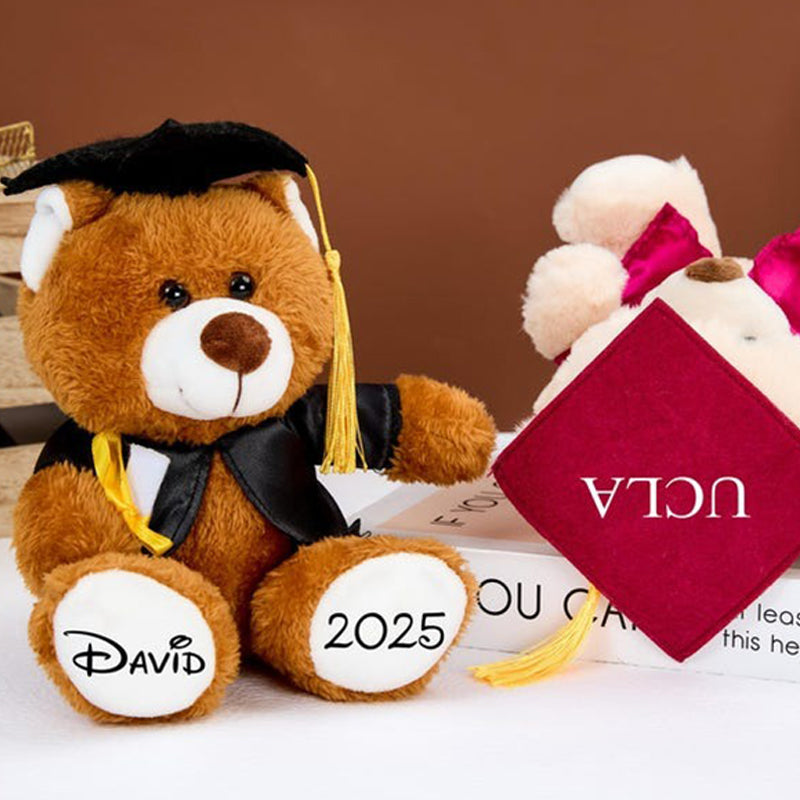 ---The default name of the bear's left paw, the default year of the right paw, and the school name on the hat.