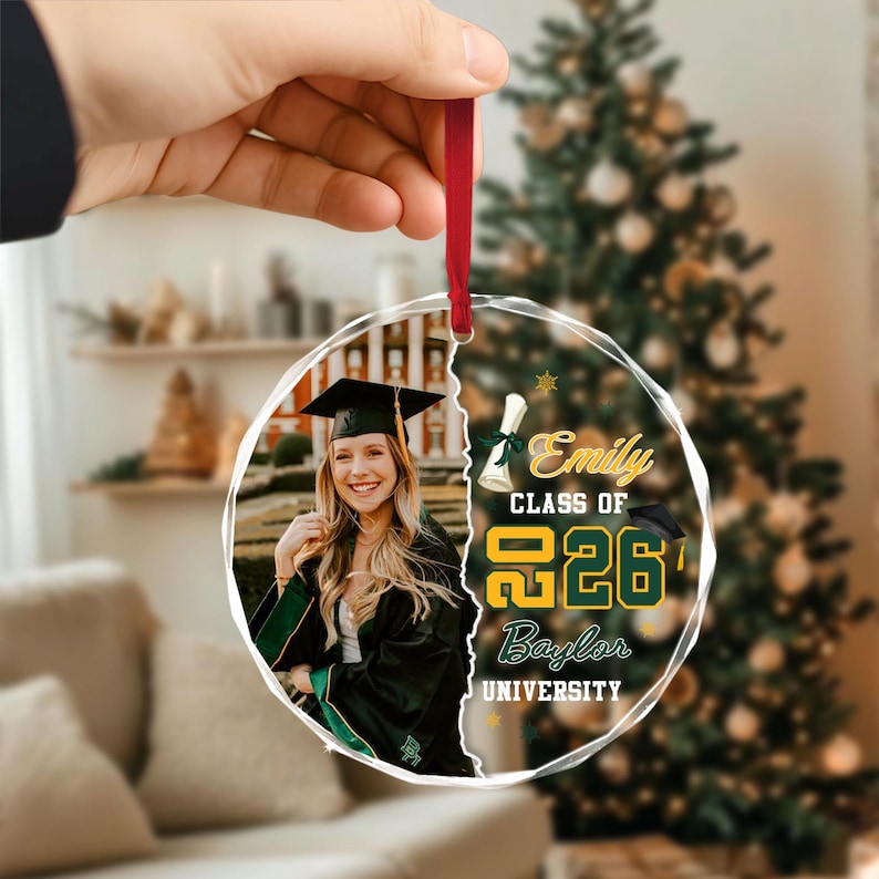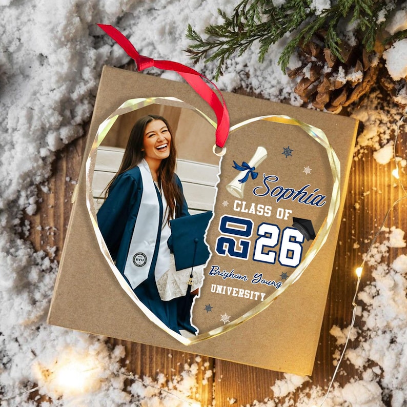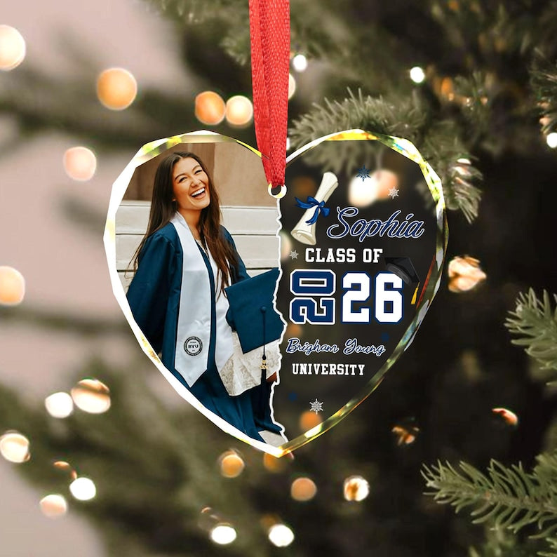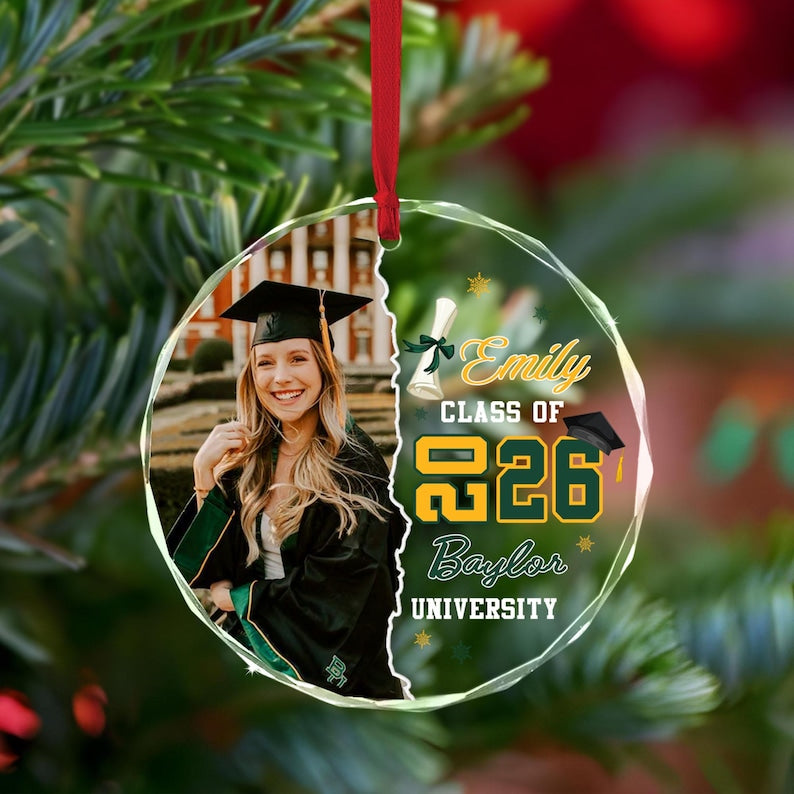 This custom graduation photo ornament is a meaningful way to celebrate your graduate’s big accomplishment. Personalized with their photo, name, and graduation year (2026), this ornament makes a lasting keepsake they’ll treasure for years to come.