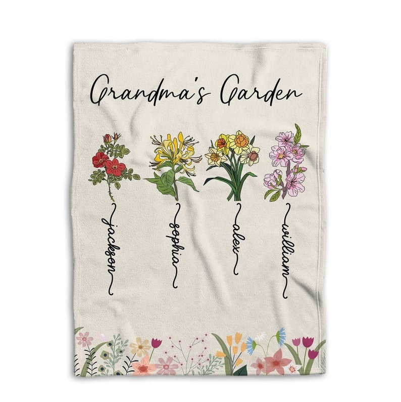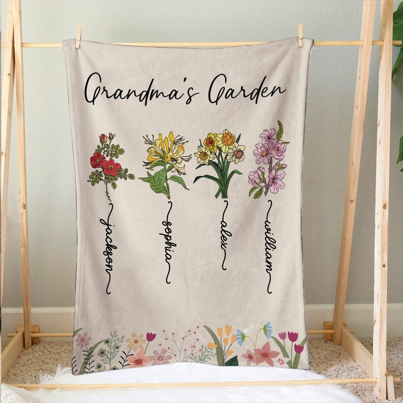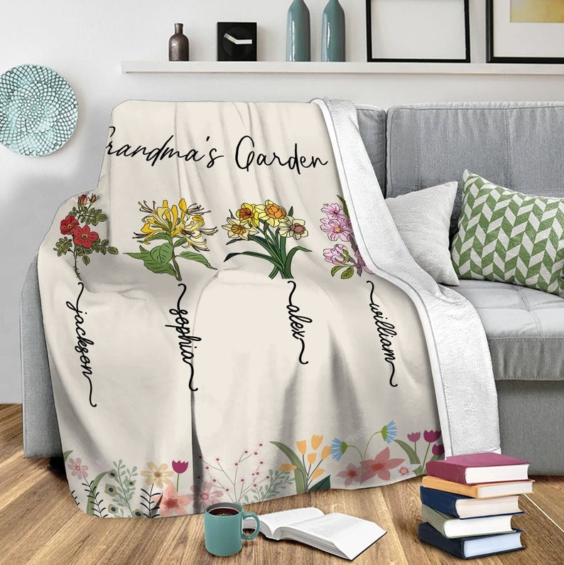 Personalized Grandma's Garden Blanket, Birth Flower Soft Cozy Sherpa Fleece Throw Blankets