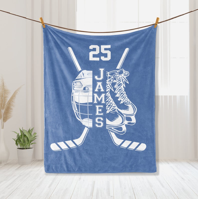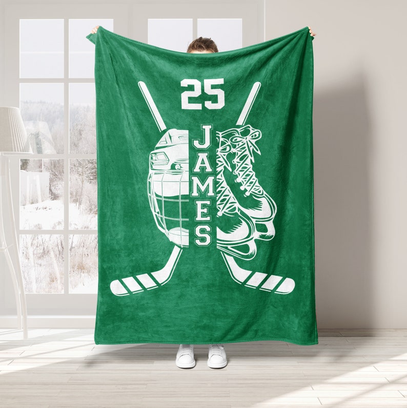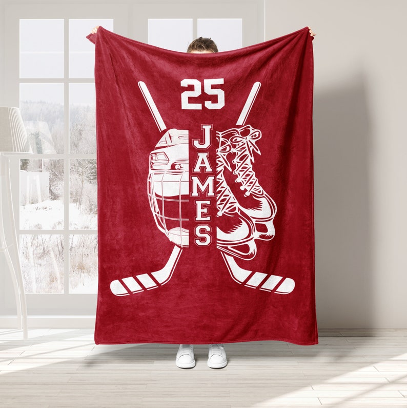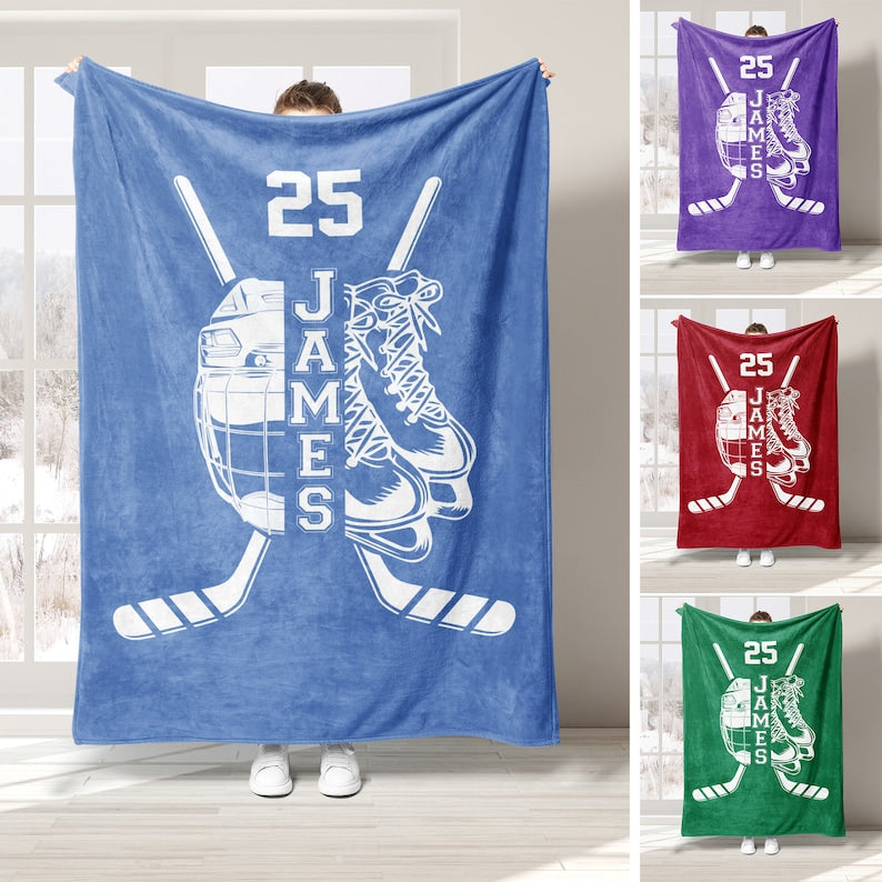Personalized Hockey Blanket, Custom Name Number Blankets