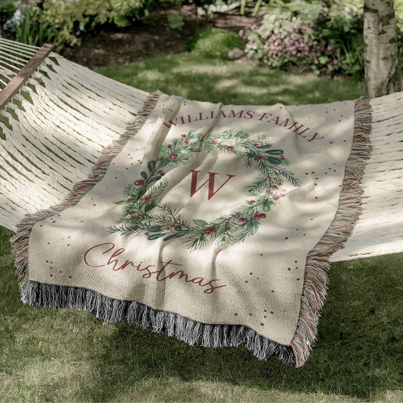 Personalized Holiday Gift Christmas Blanket Family Name Throw Blanket