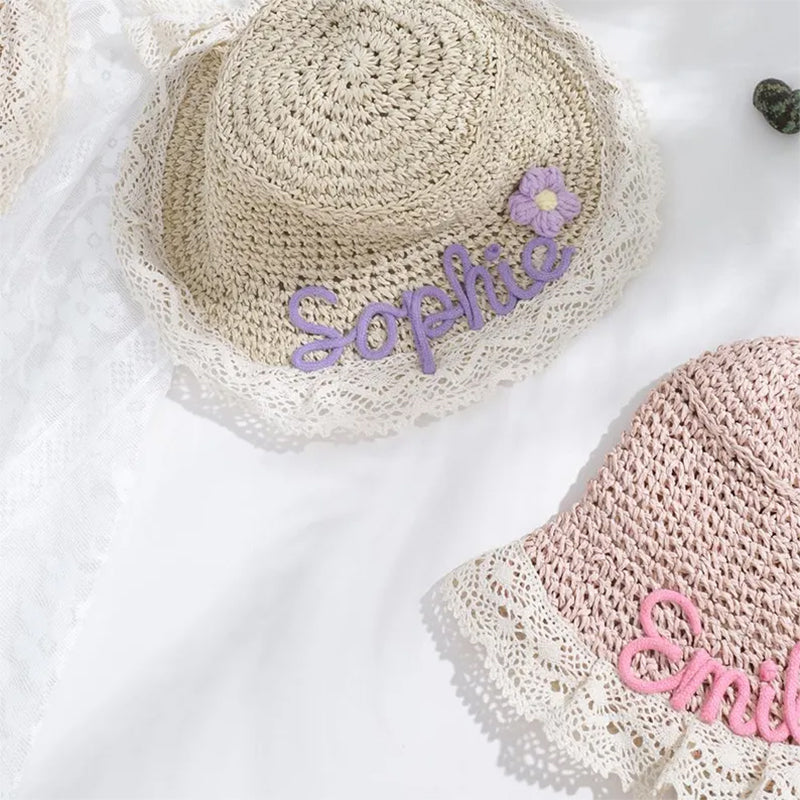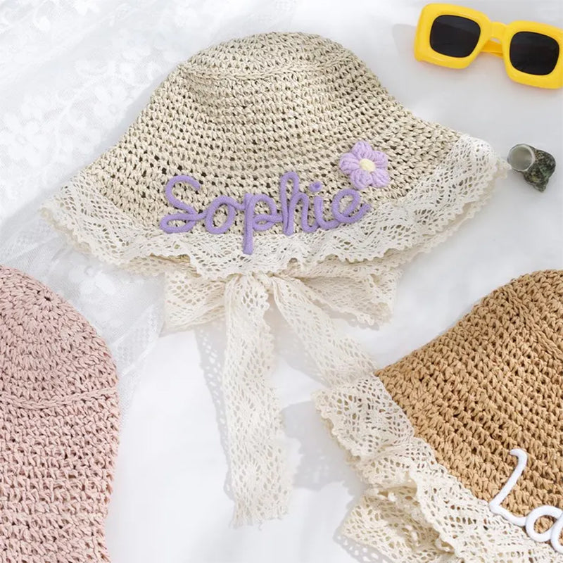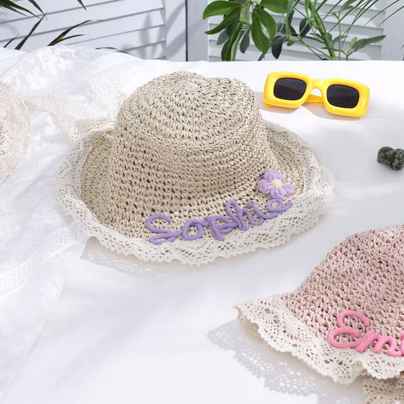Treat your child to a unique and adorable hand-embroidered straw hat, personalized with their name for a special touch. Perfect for sunny beach days, summer adventures, or adding a playful flair to everyday outfits, this hat combines comfort, breathability, and charm for your little explorer.