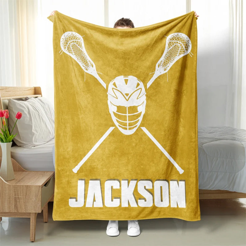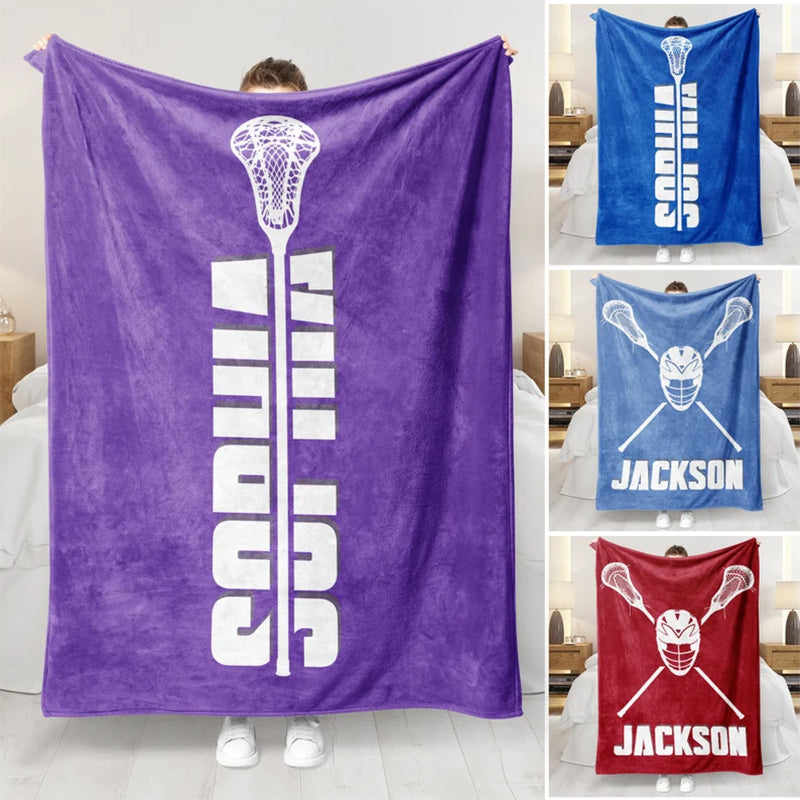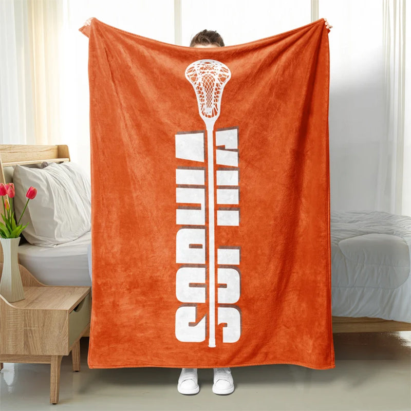 Personalized Lacrosse Blanket - Custom Name Sherpa Fleece Throw