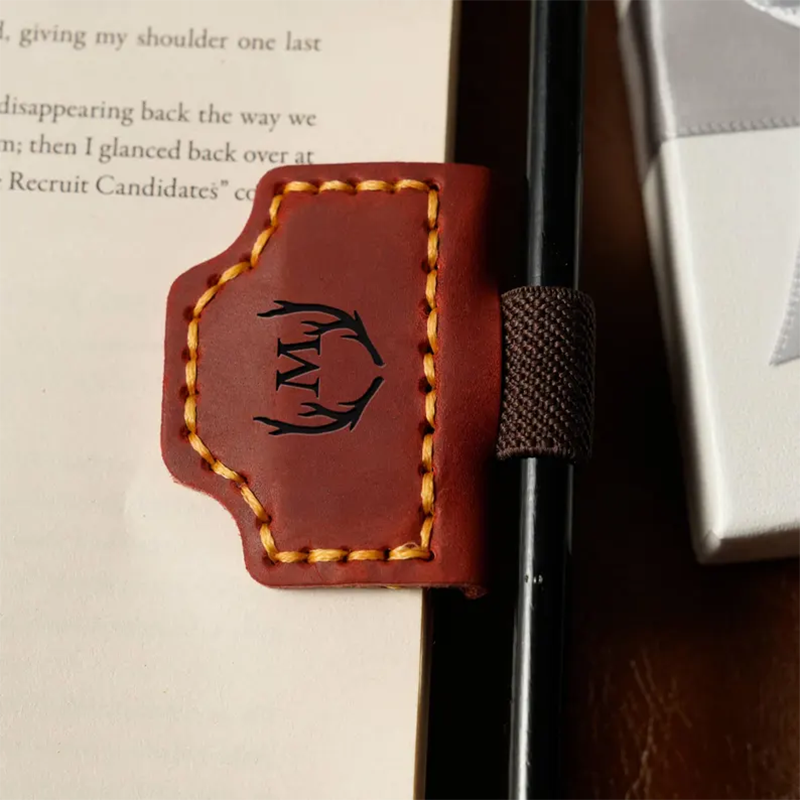Elevate your reading and writing experience with this 100% handmade leather magnetic bookmark, designed with a convenient pen clip. Each piece is carefully handcrafted from premium leather, making it durable, elegant, and truly one-of-a-kind.