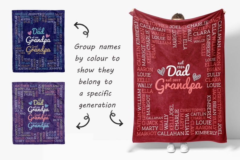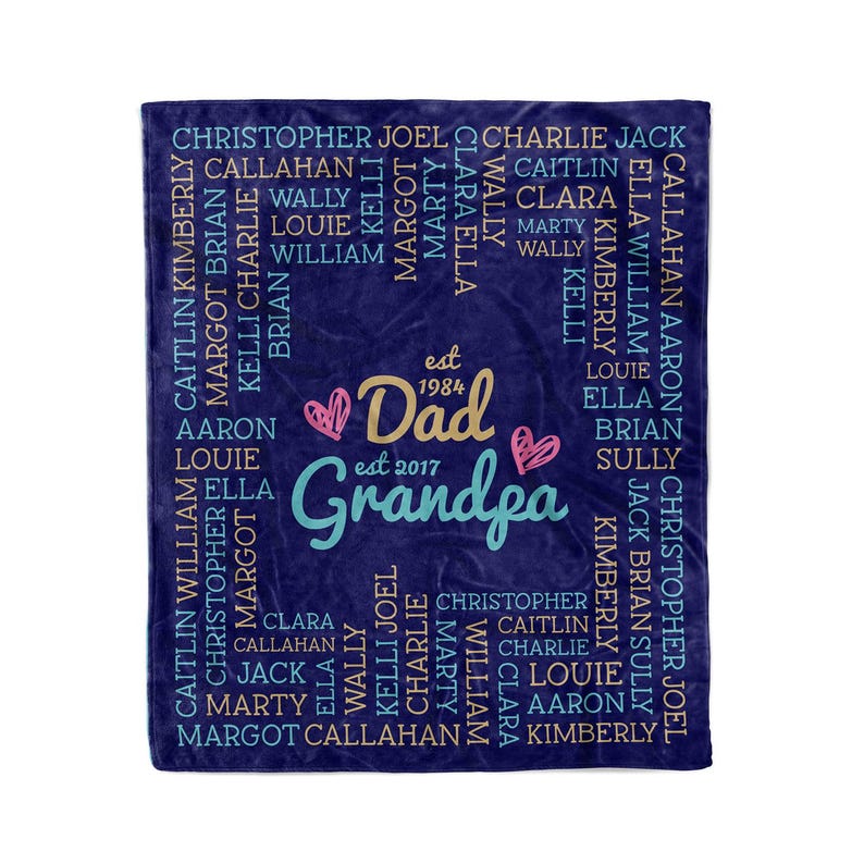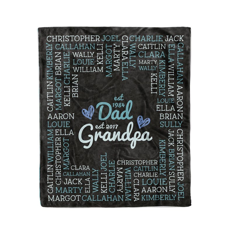 Personalized Minky Grandpa Blanket, Custom Kids' and Grandkids' Names