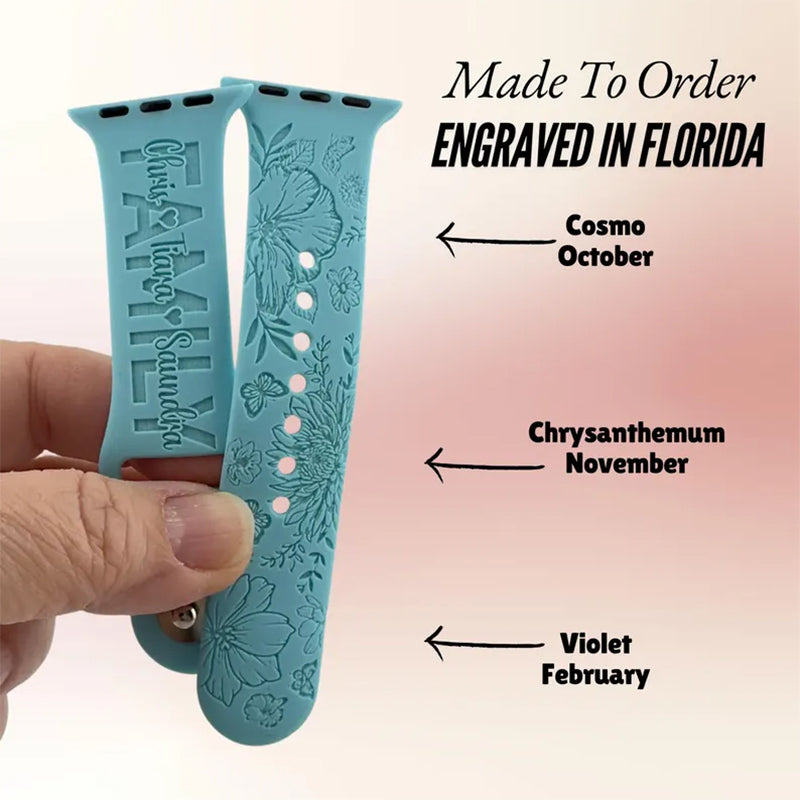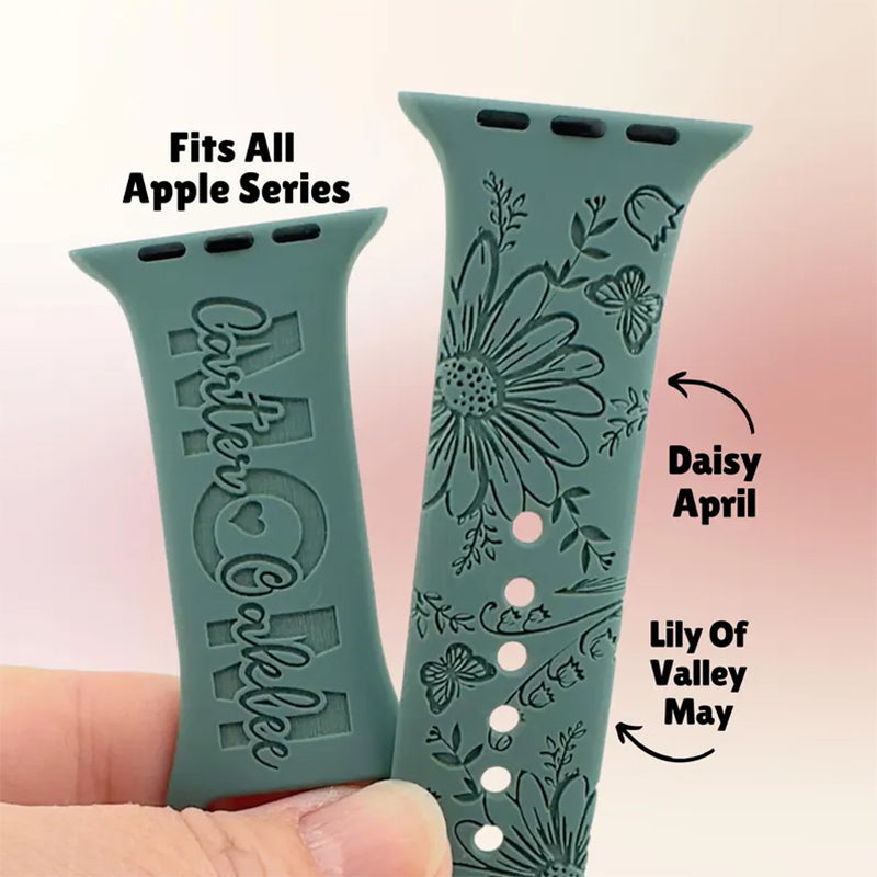 Personalized Mom Watch Band Birth Flower Watch Strap Kid Name