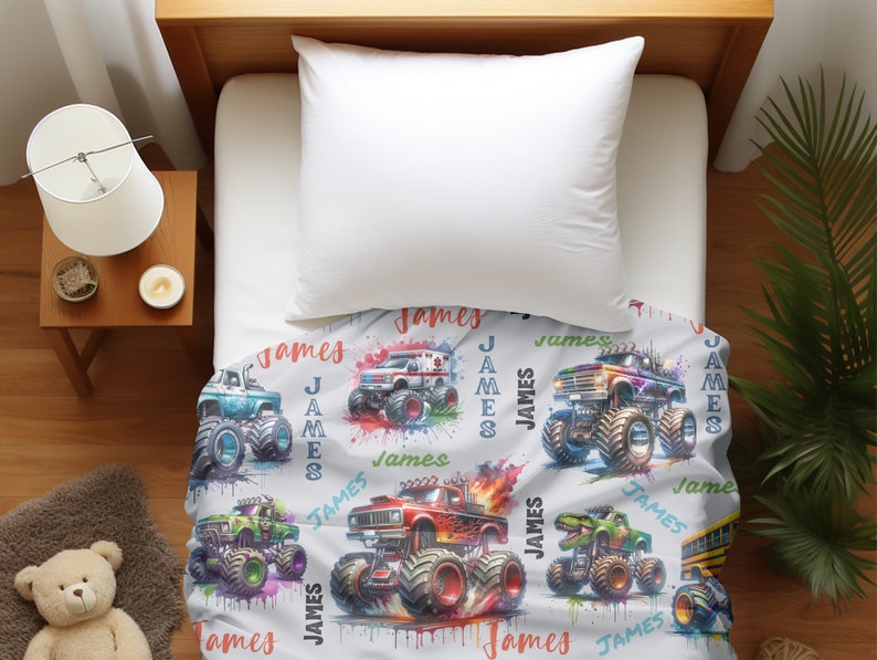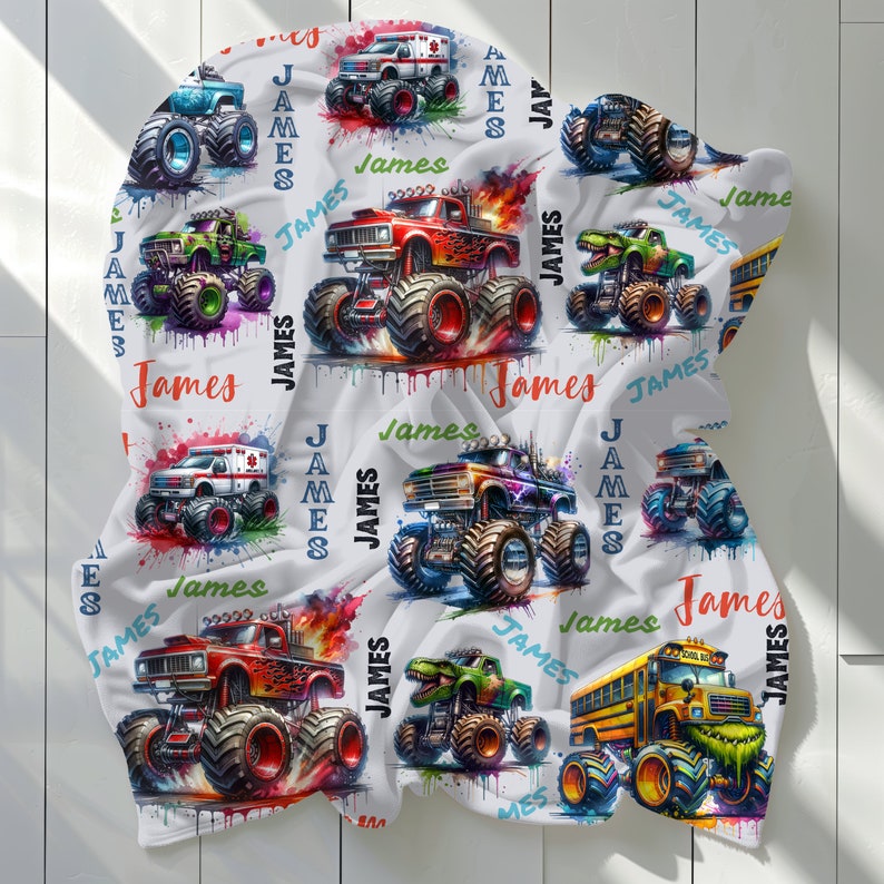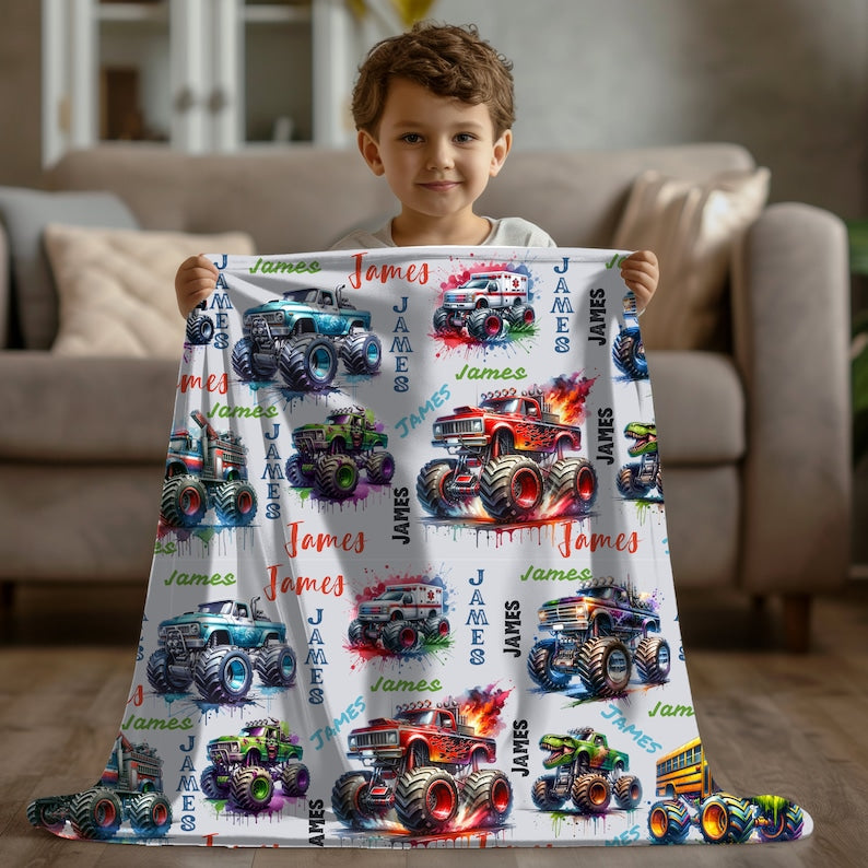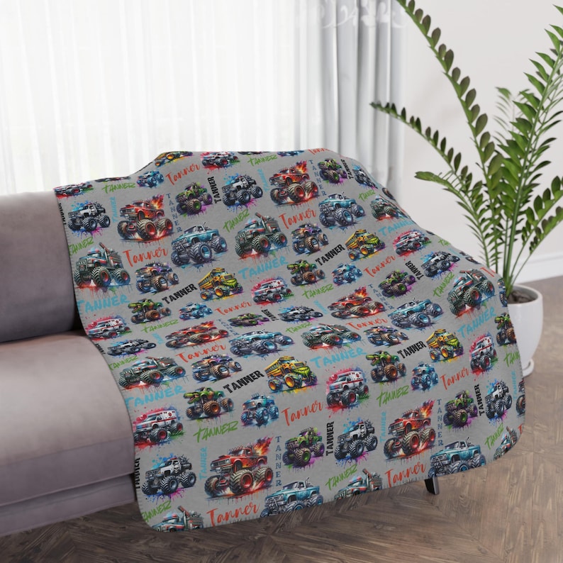 Personalized Monster Truck Blanket, Custom Boys' Name Throw