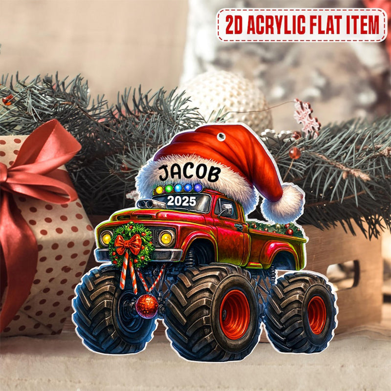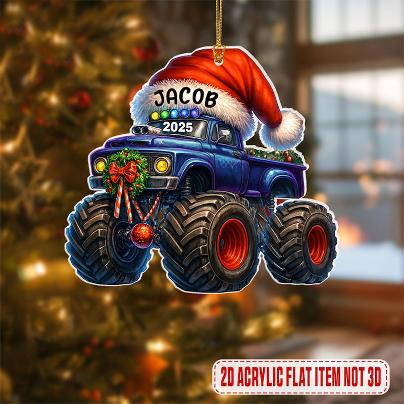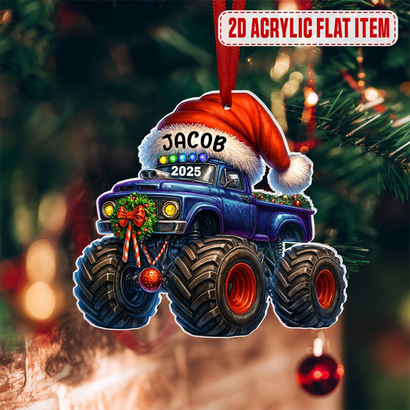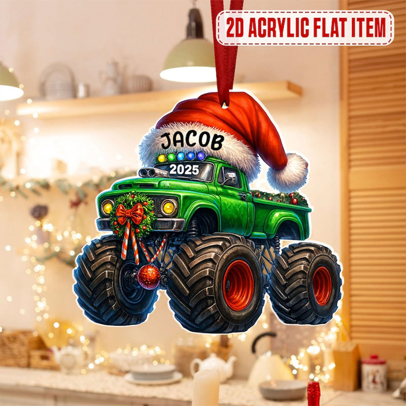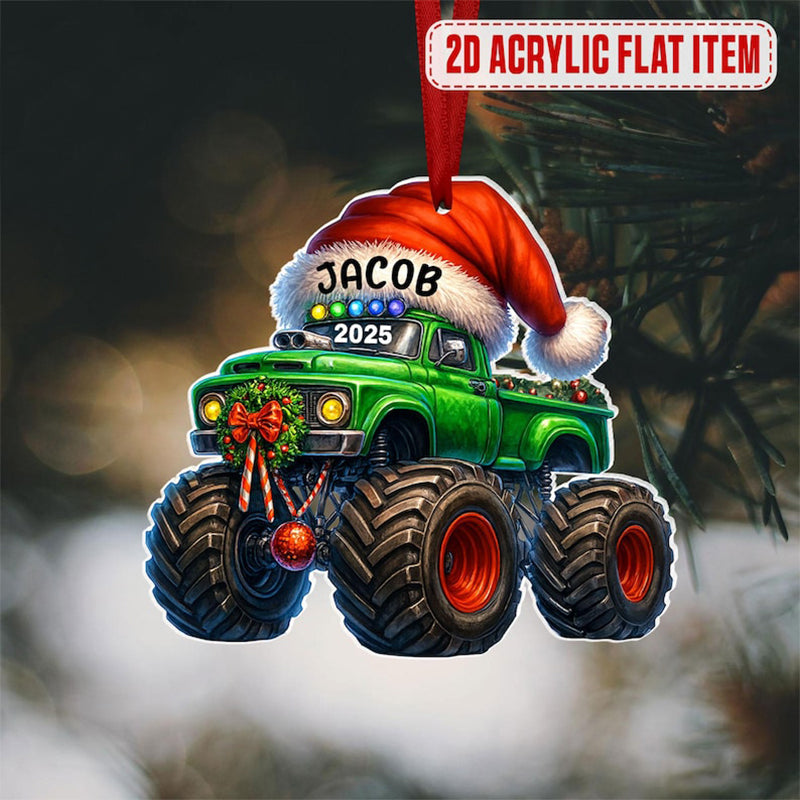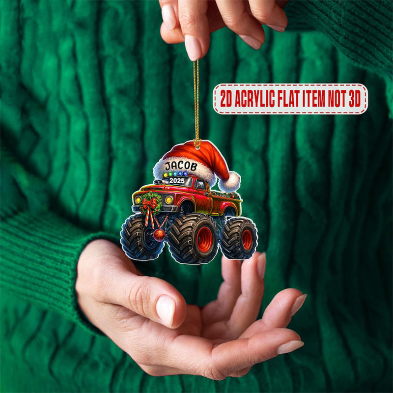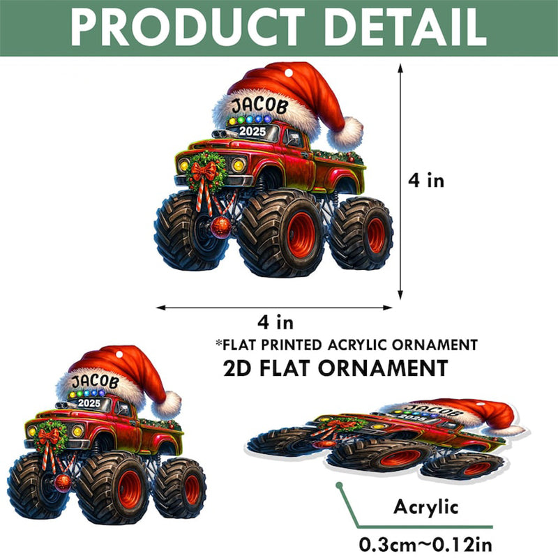 Custom Dinosaur Christmas Ornament, Monster Truck Ornament,Boys Dino Christmas Ornament,Baby Boy Christmas Present,Christmas Gift For Child