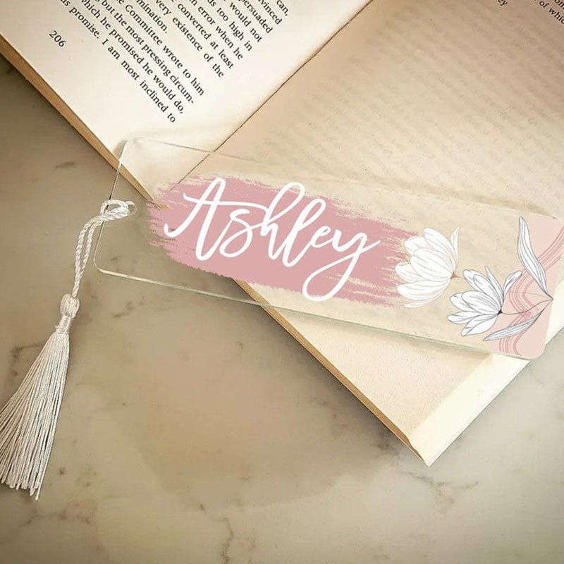 Our bookmarks feature a stunning floral design and can be personalized with the name of the recipient or a special word.
