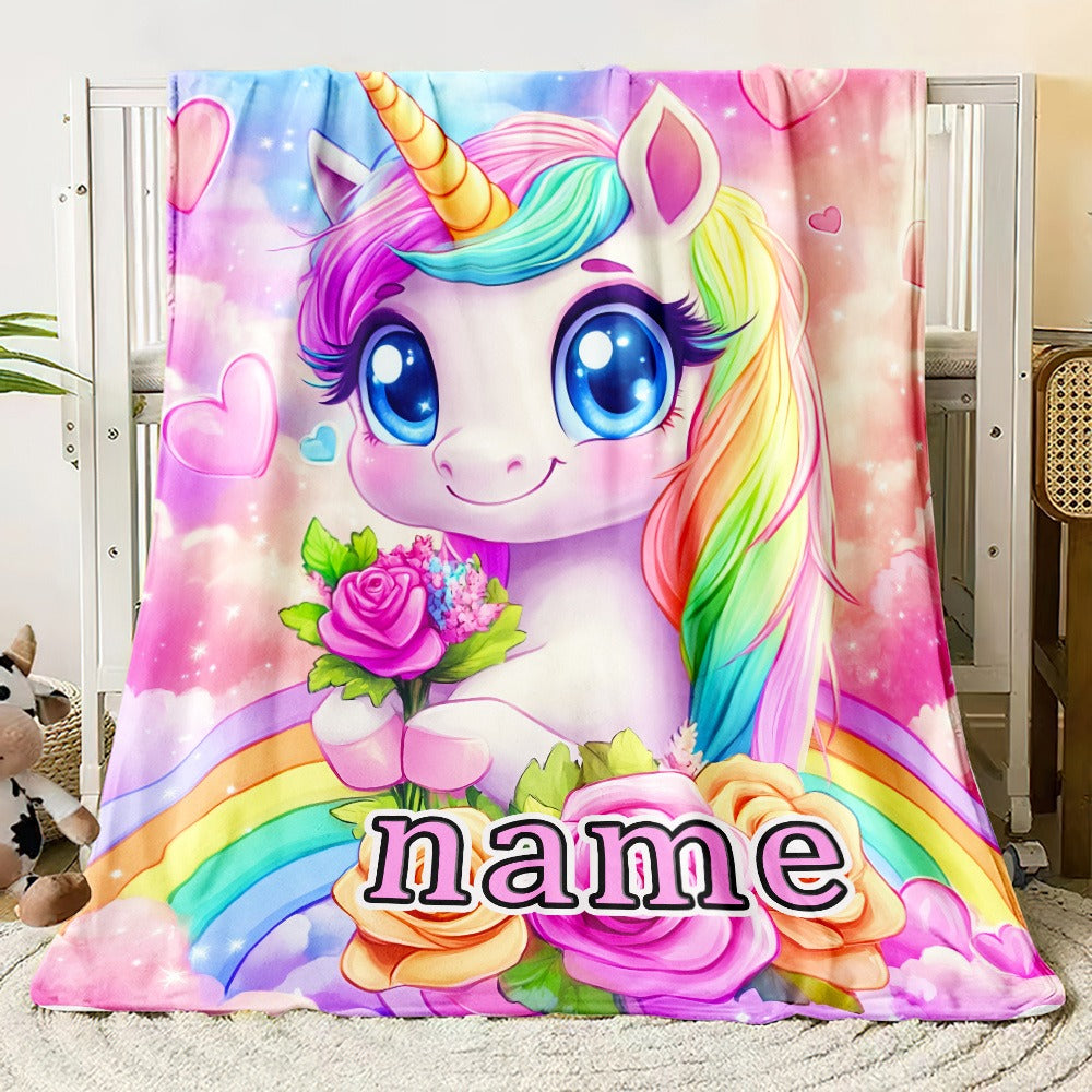 Personalized Name Adorable Mythical Creature Design HD Print Blanket