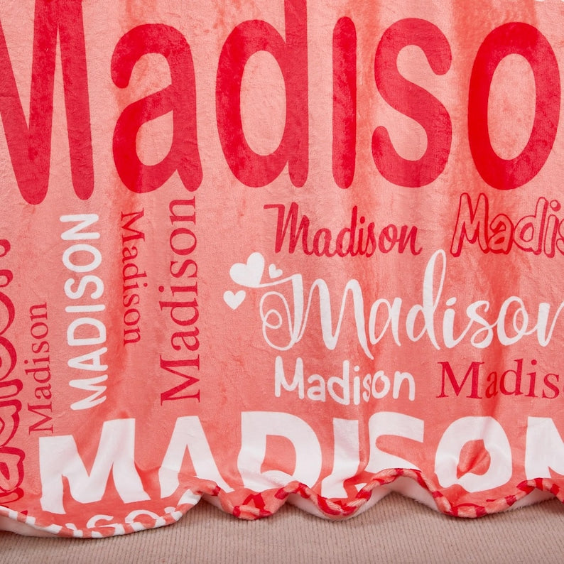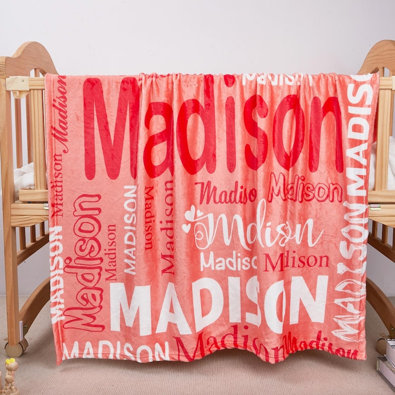 Personalized Name Fleece Blanket, Custom Word Cloud, Newborn Gift
