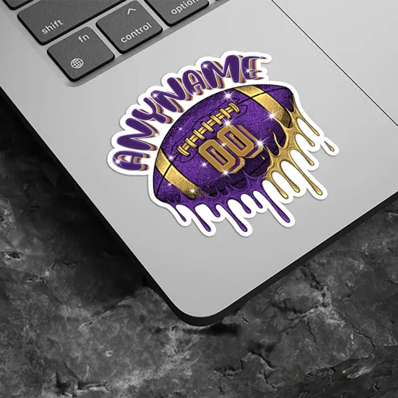 Personalized Name & Number Football Drip Sticker, Custom American Football Ball Drip Vinyl Water Bottle Sticker Baseball Team Gift Waterproof Die-Cut Vinyl Sticker for Water Bottle Sticker, Tumbler Sticker, Kindle Sticker, Laptop Sticker Decal Birthday Gifts for Her Him Adults Kids
