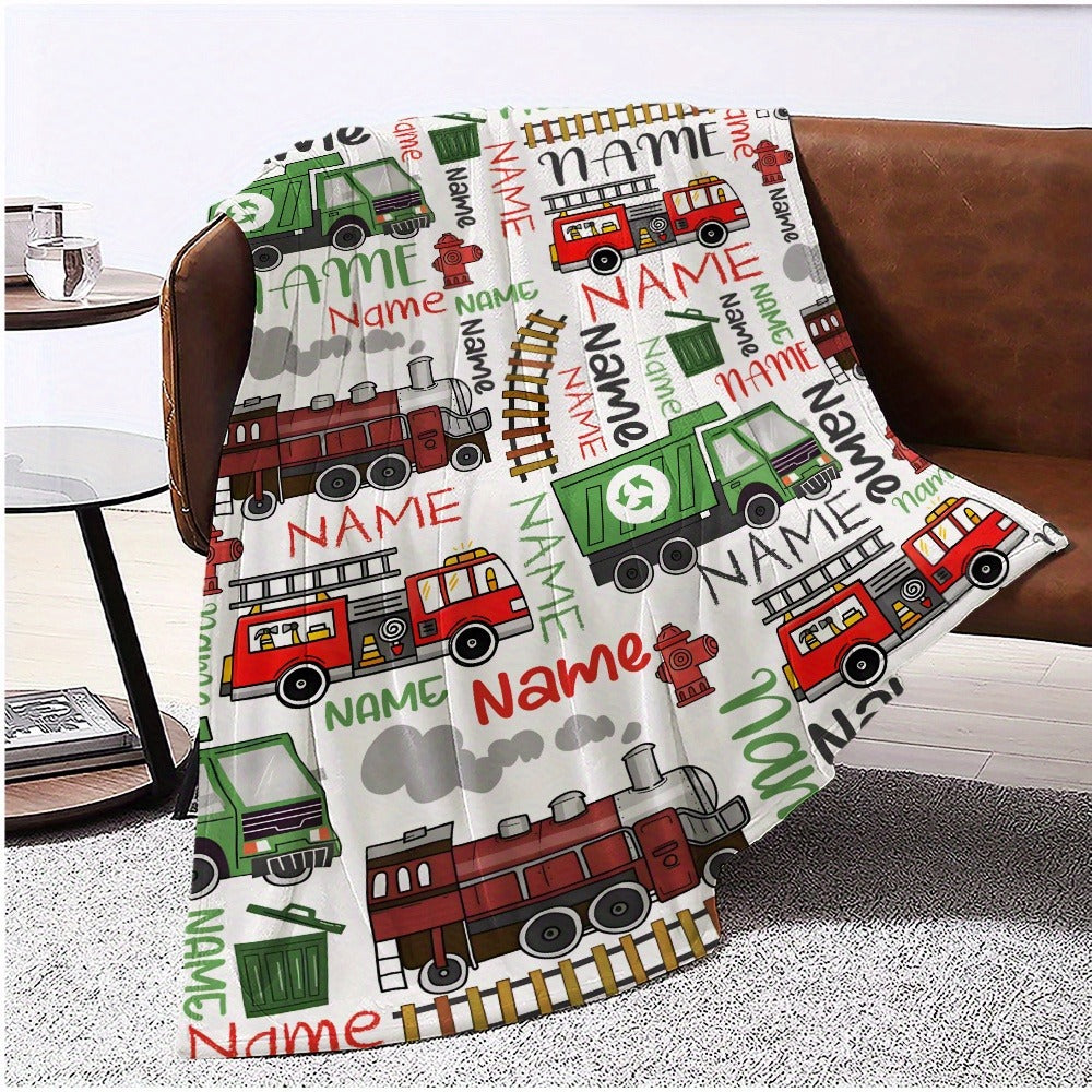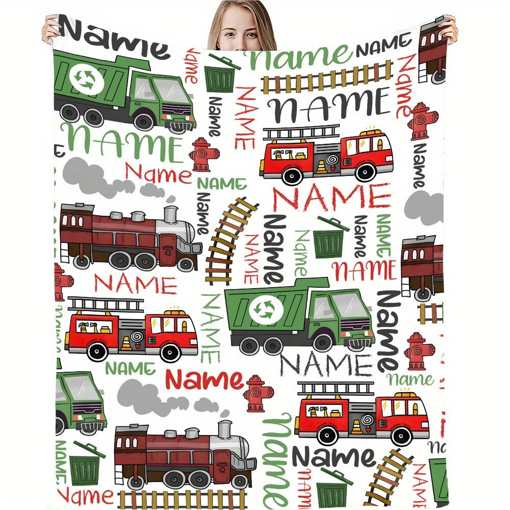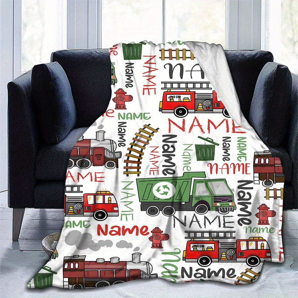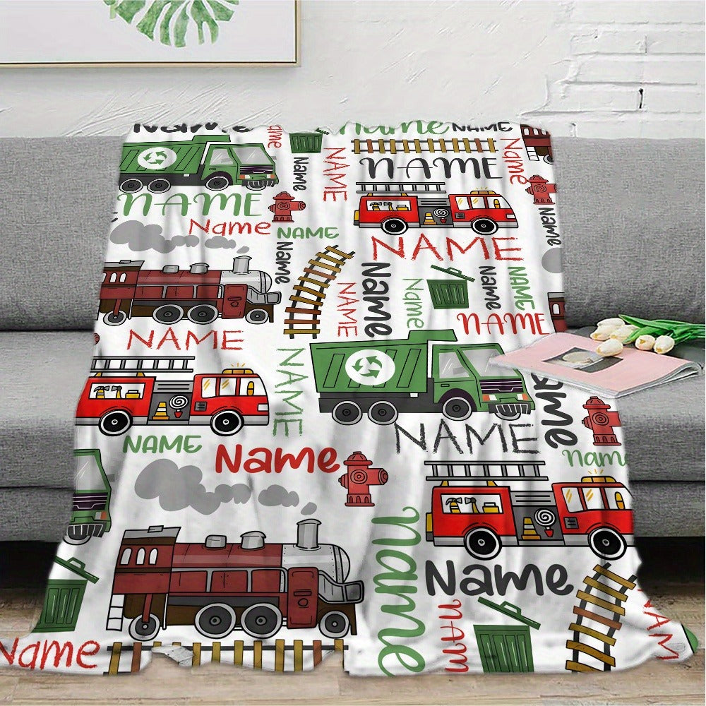 Personalized Name Vehicle Blanket: Customizable with Trains, Fire Trucks
