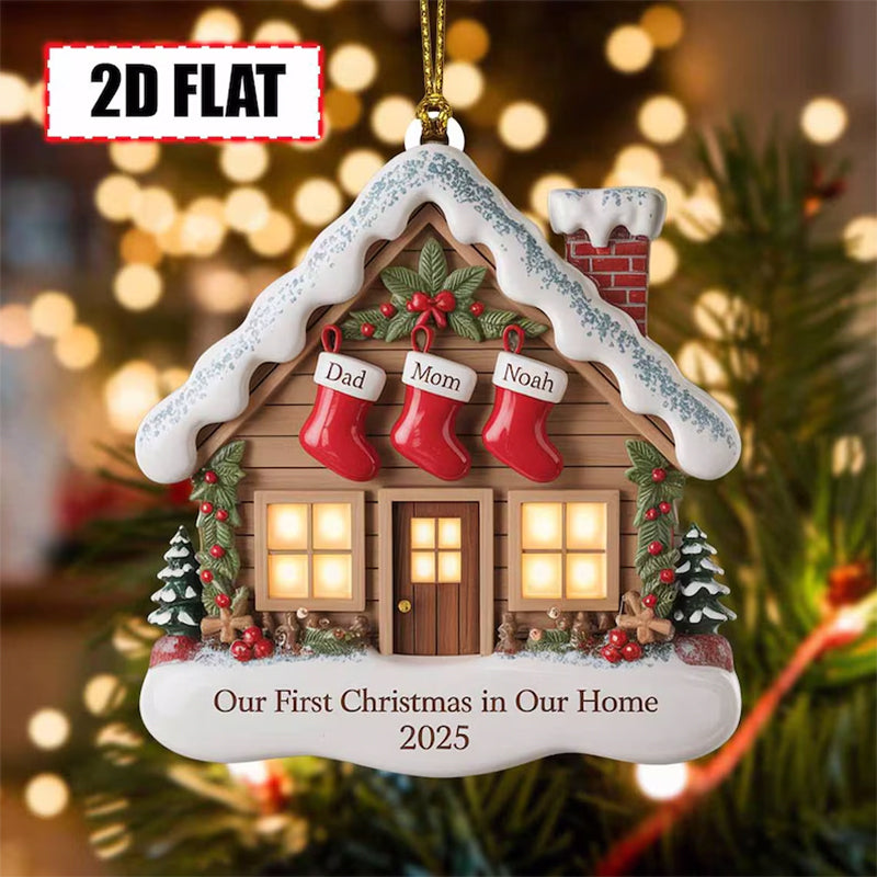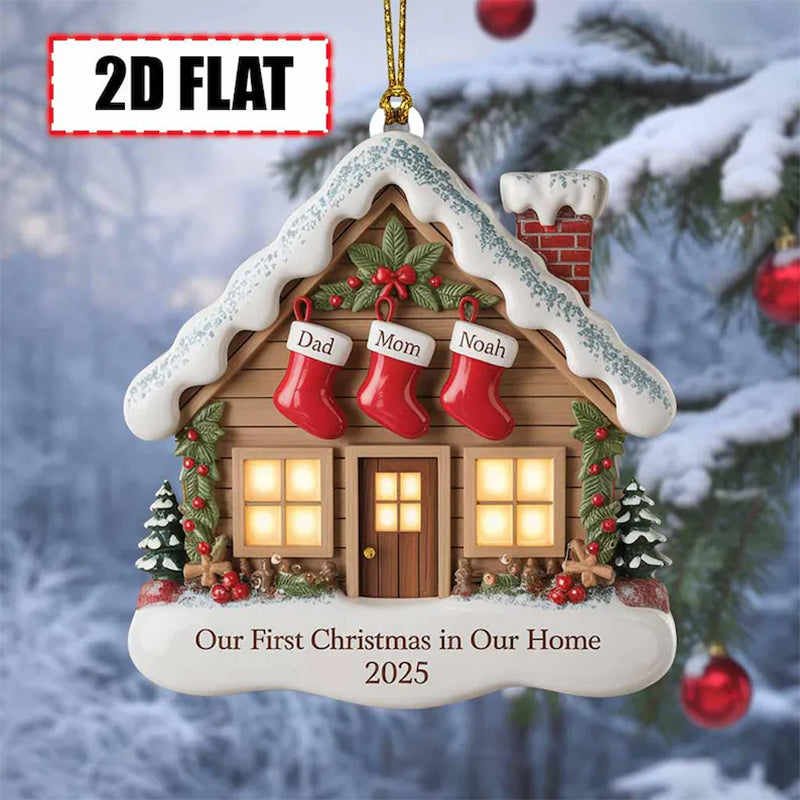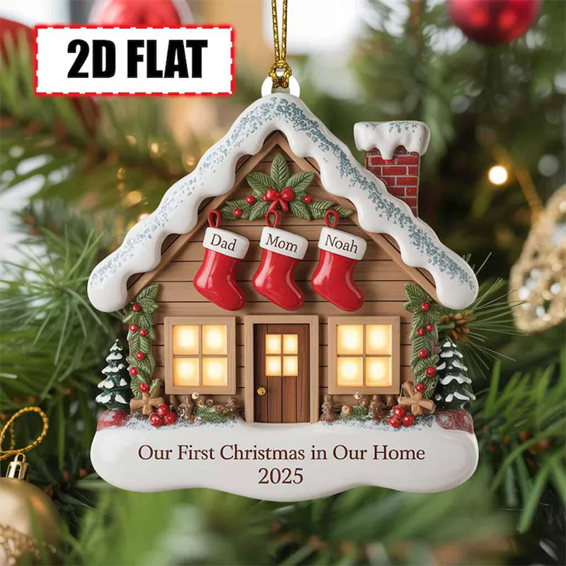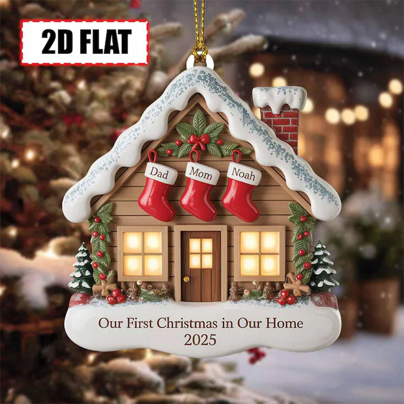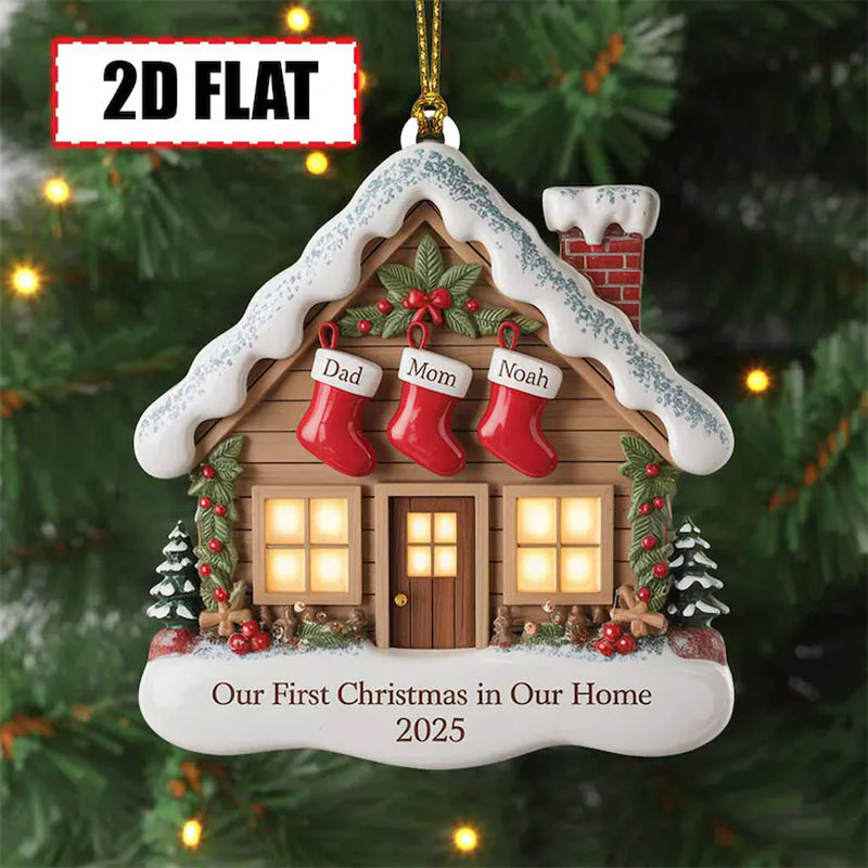 🏠 Celebrate a milestone moment with this charming **Our First Christmas in Our Home Ornament 2025**! Featuring a cozy snow-covered house, festive stockings personalized with your family’s names, and a heartfelt message, this ornament is the perfect keepsake for couples, newlyweds, or families celebrating their first holiday in a new home.