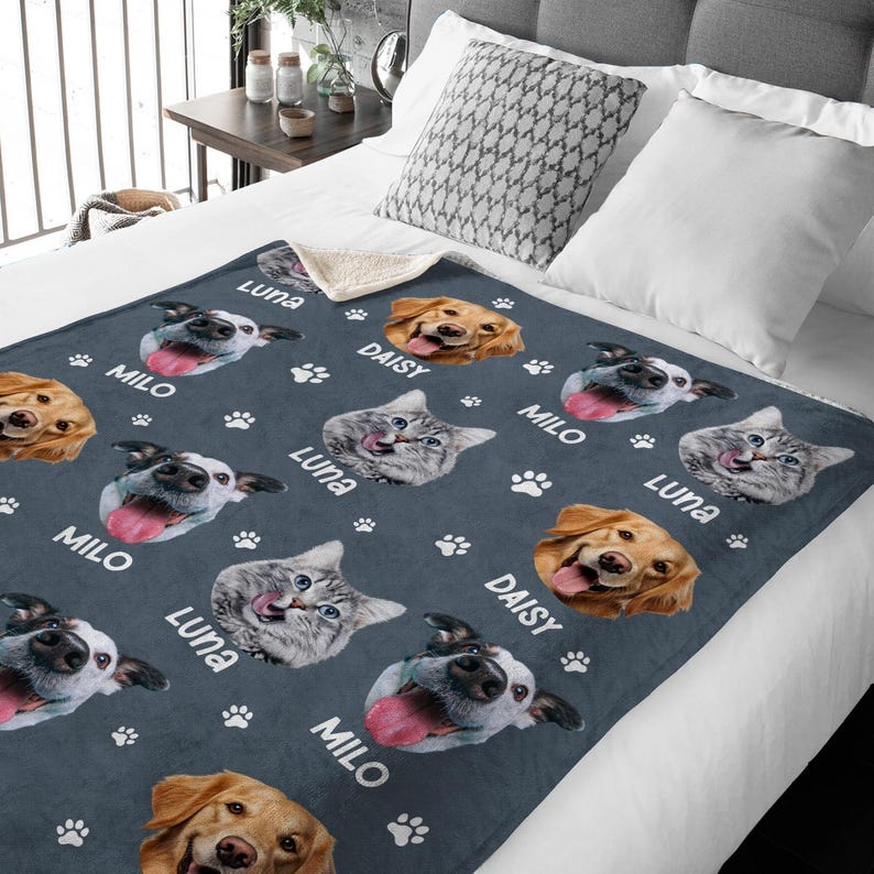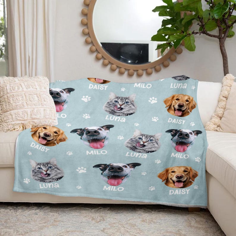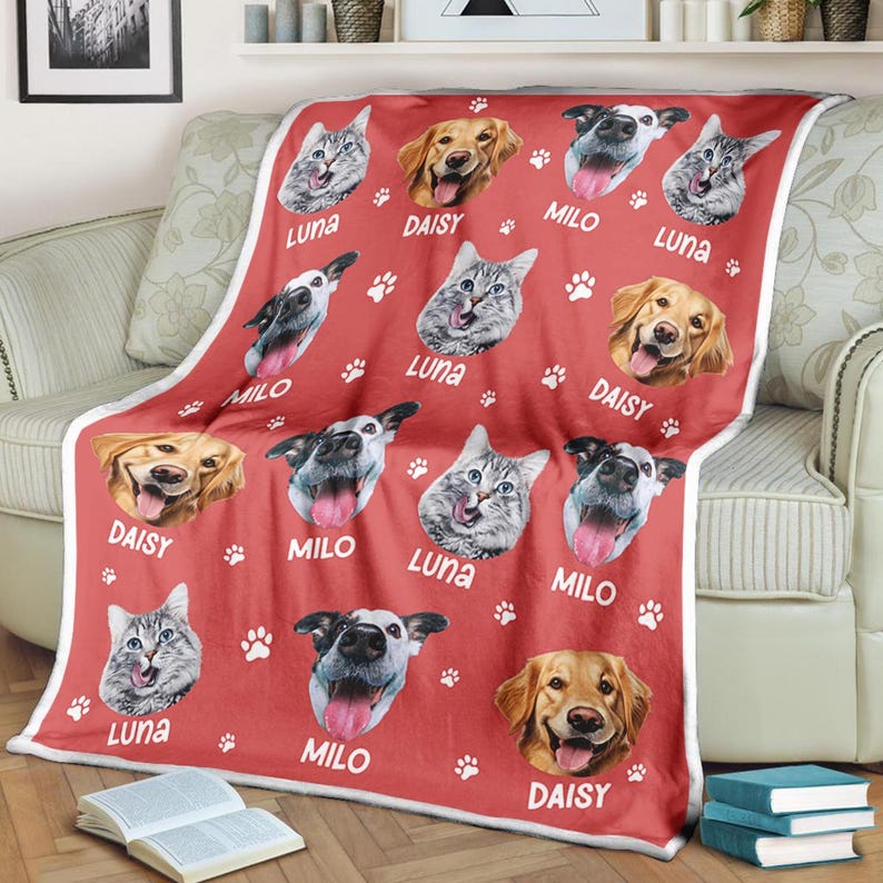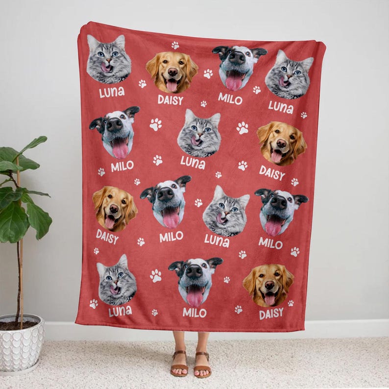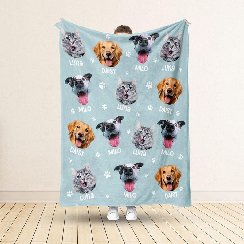 Personalized Pet Photo Fleece Blanket: Dog Mom Cat Mom Christmas Blanket