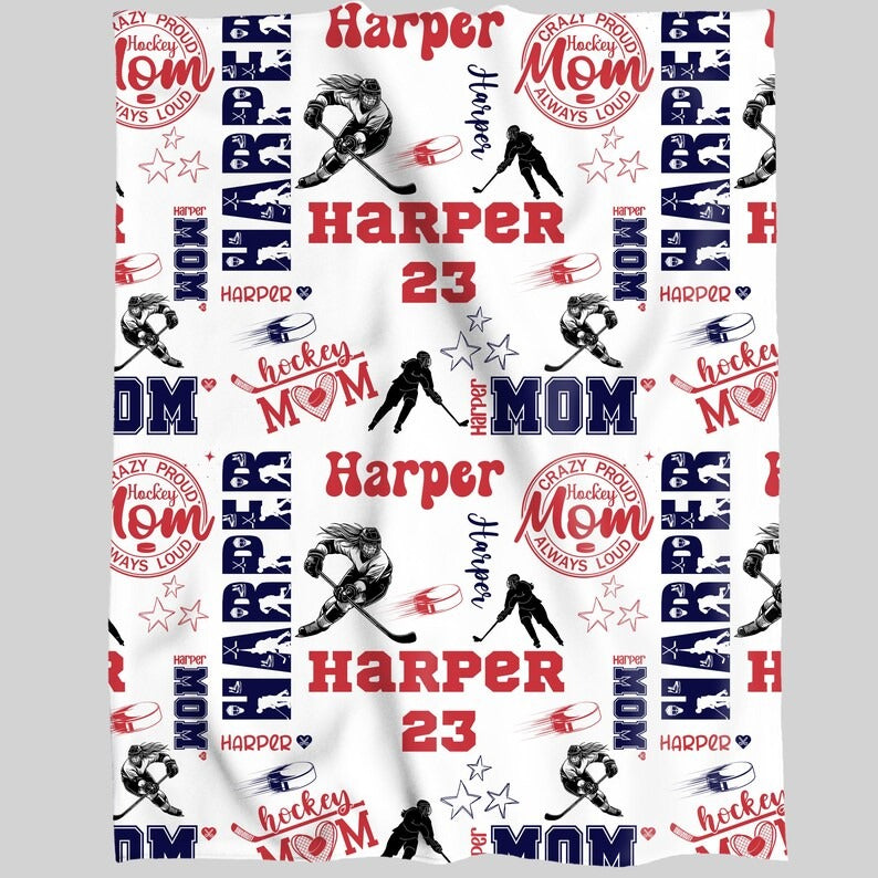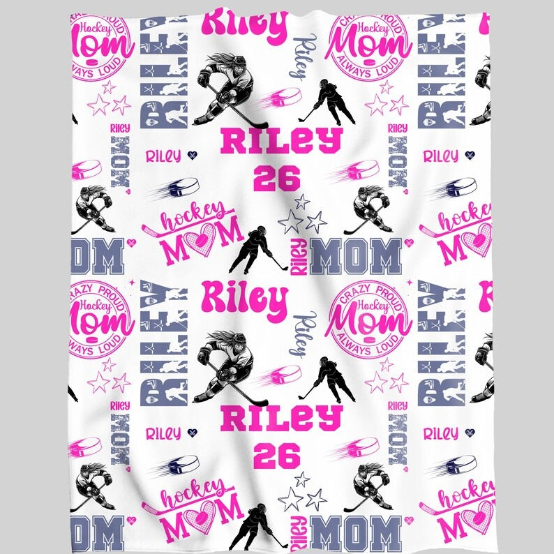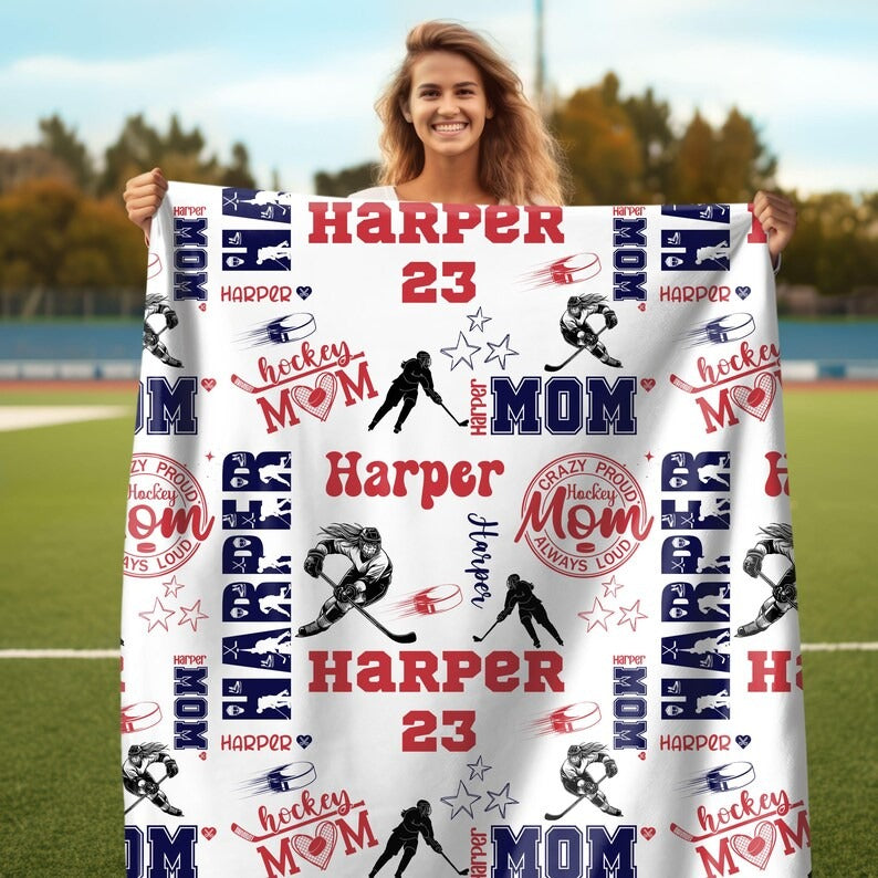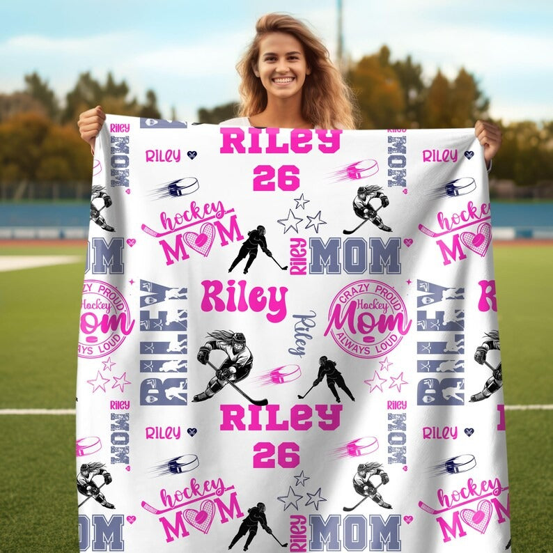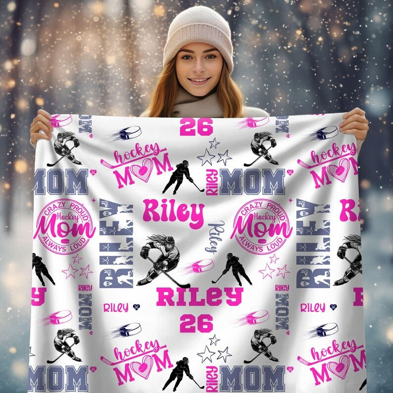 Personalized Proud Mom Ice Hockey Girl Blanket, Hockey Mom Soft Throw