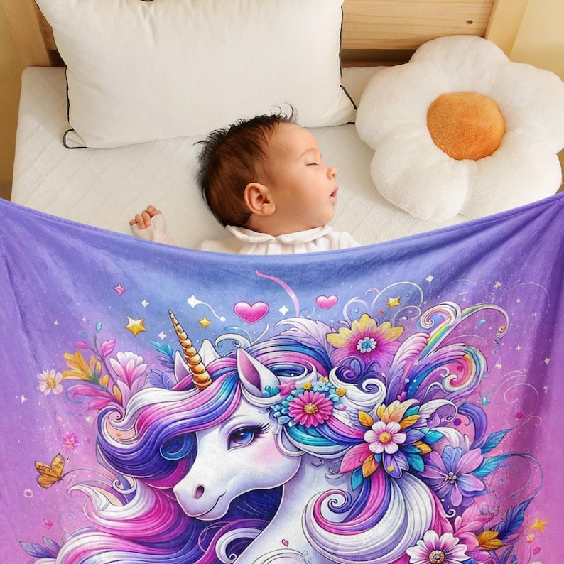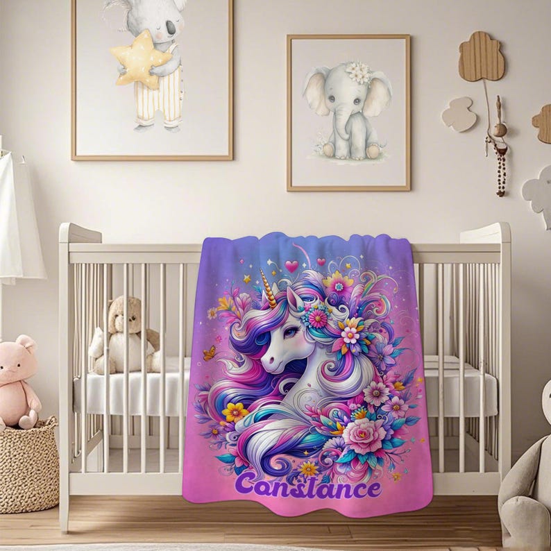 Personalized Purple Unicorn Blanket , Custom Name Kids Throw