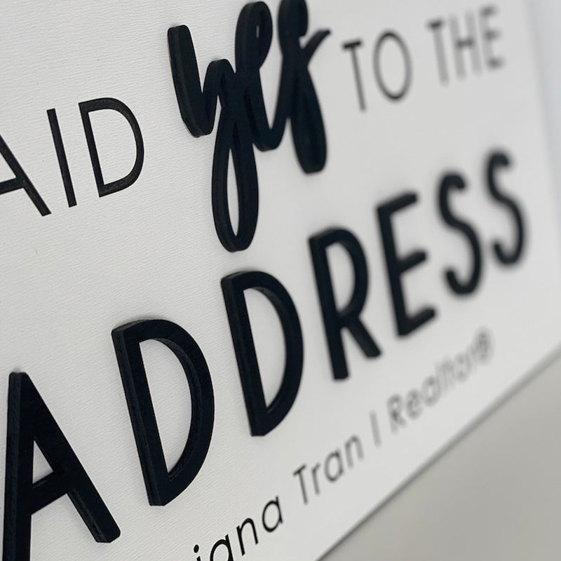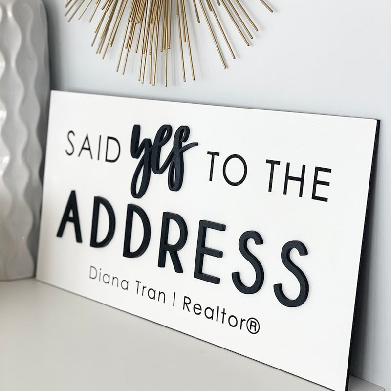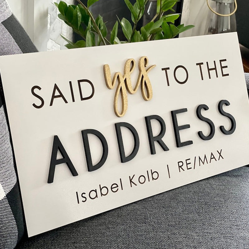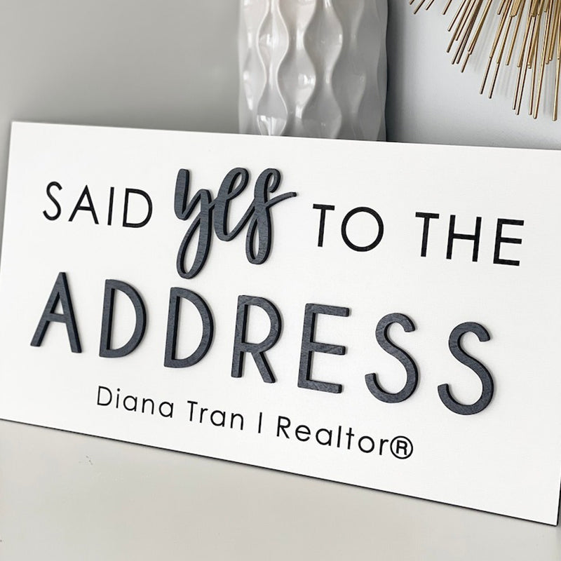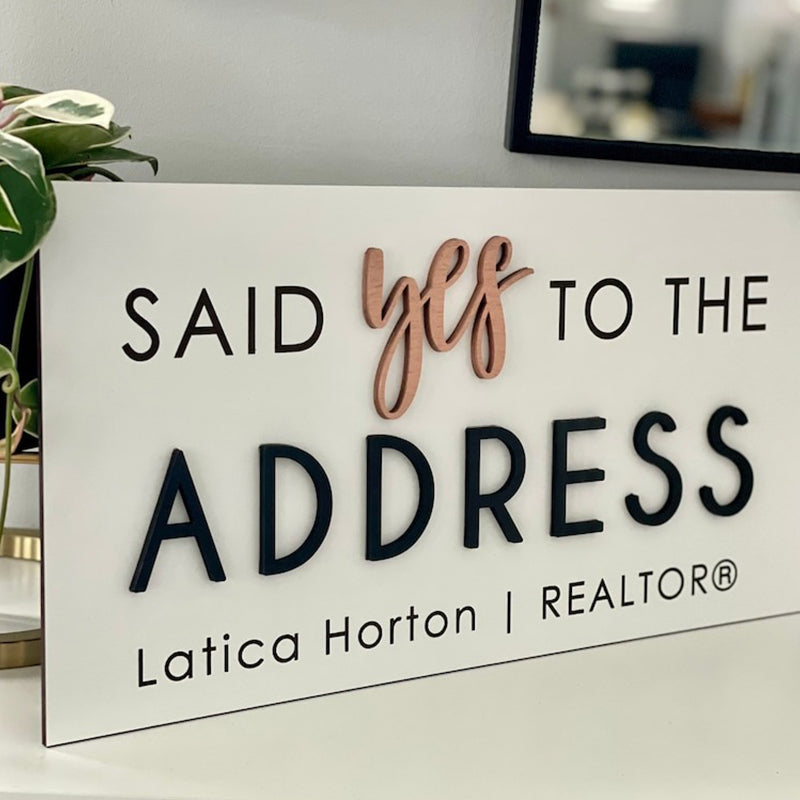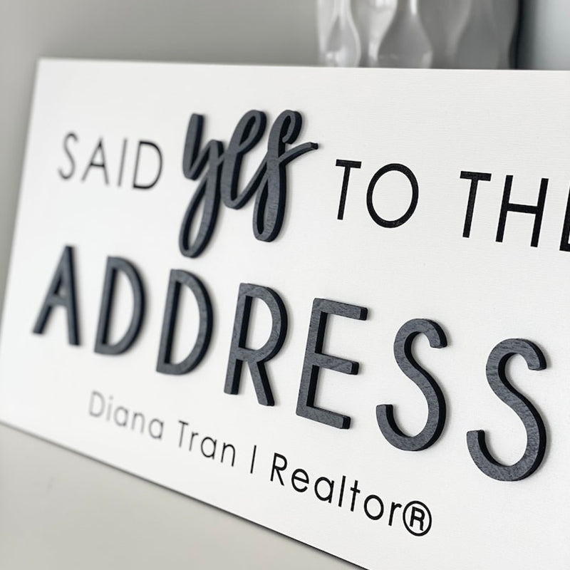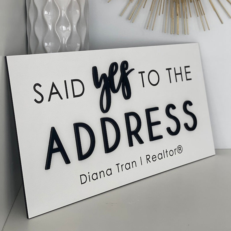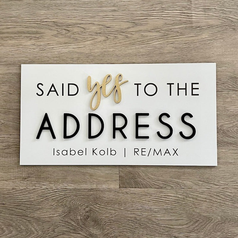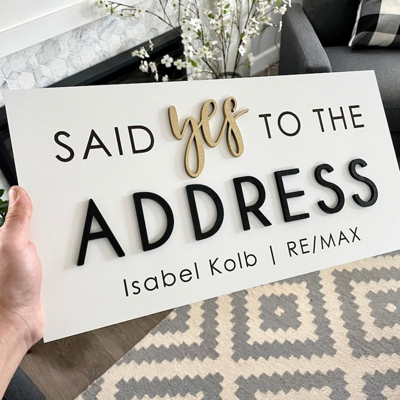 Personalized Said Yes to the Address Sign. It's the perfect Realtor Sign or Real Estate Agent Sign. It can also be used as a sold sign or during closing. Capture a big milestone with a custom sign!