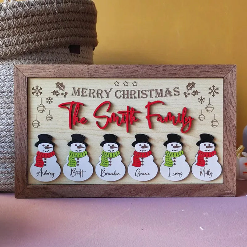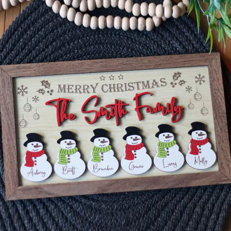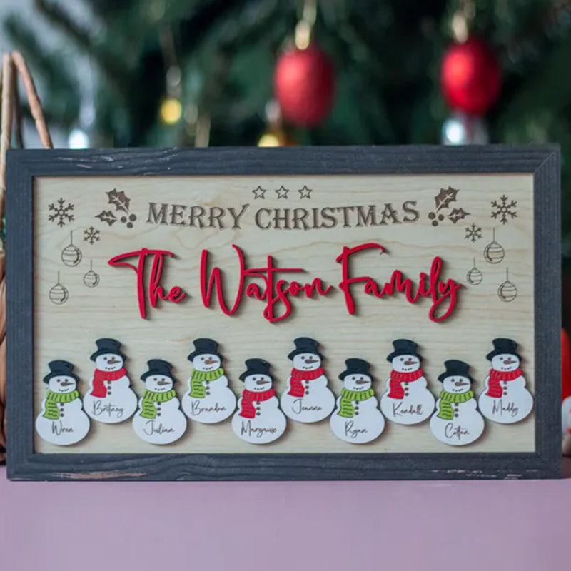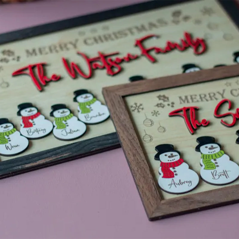 Snowman Family Sign, Christmas Family Sign, Custom Christmas Family Decor, Snowman Sign, Wooden Family Sign, Christmas Home Decor
