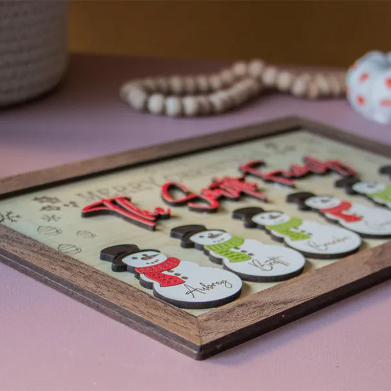 Celebrate your family with this adorable and personalised "Snowman Family Sign"! Featuring cute Snowmen with each family member's name, this handcrafted decor piece is perfect for the holidays or year-round! This sign adds warmth and charm to any home.