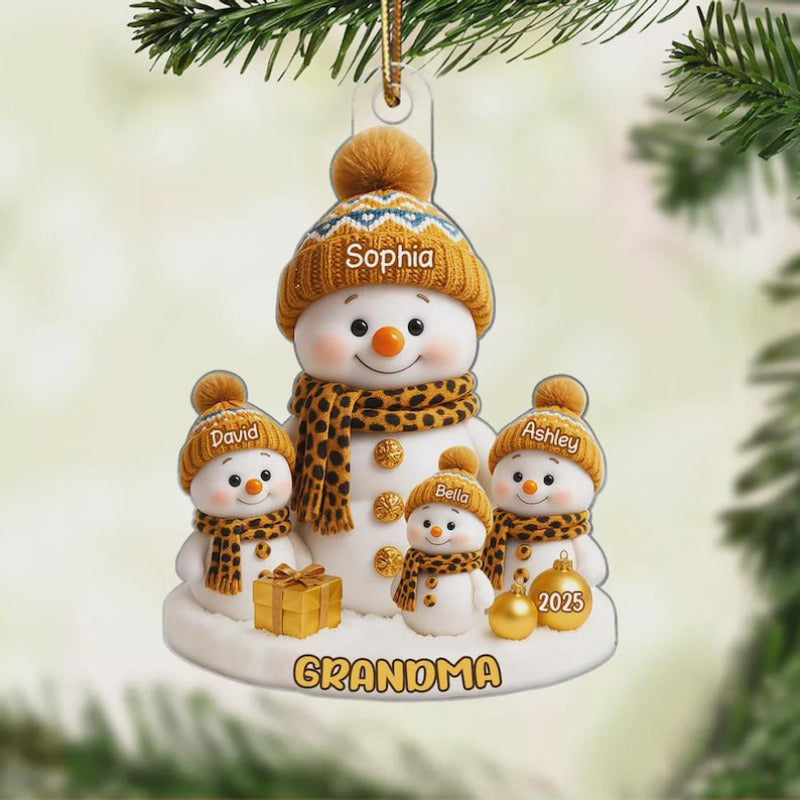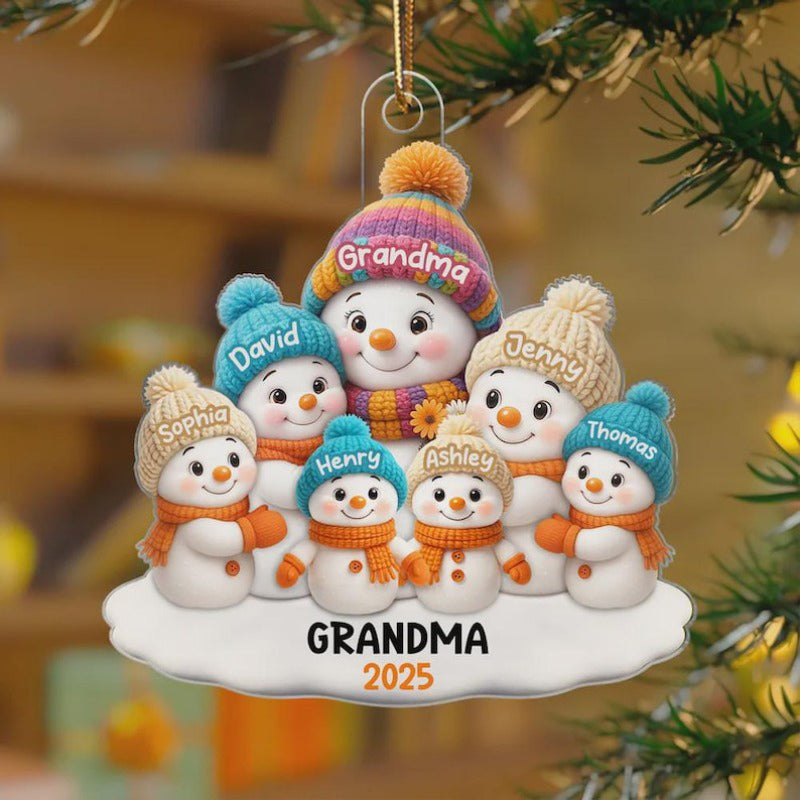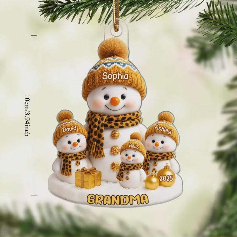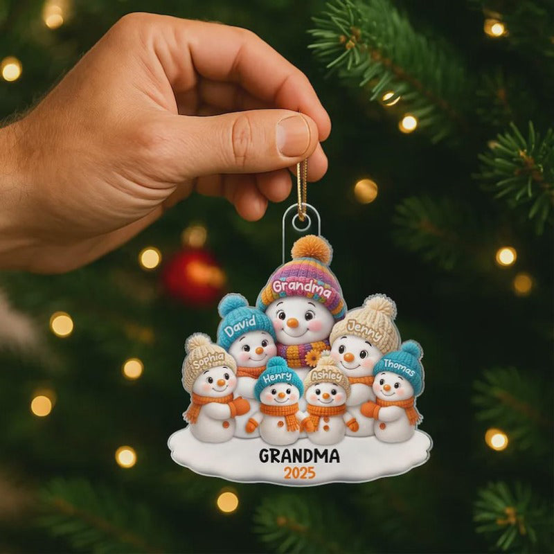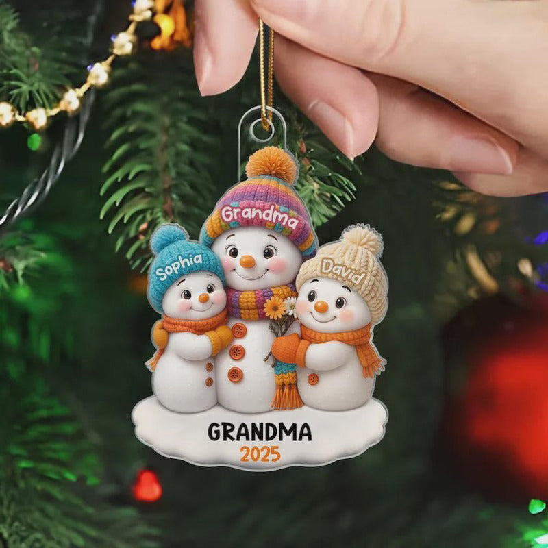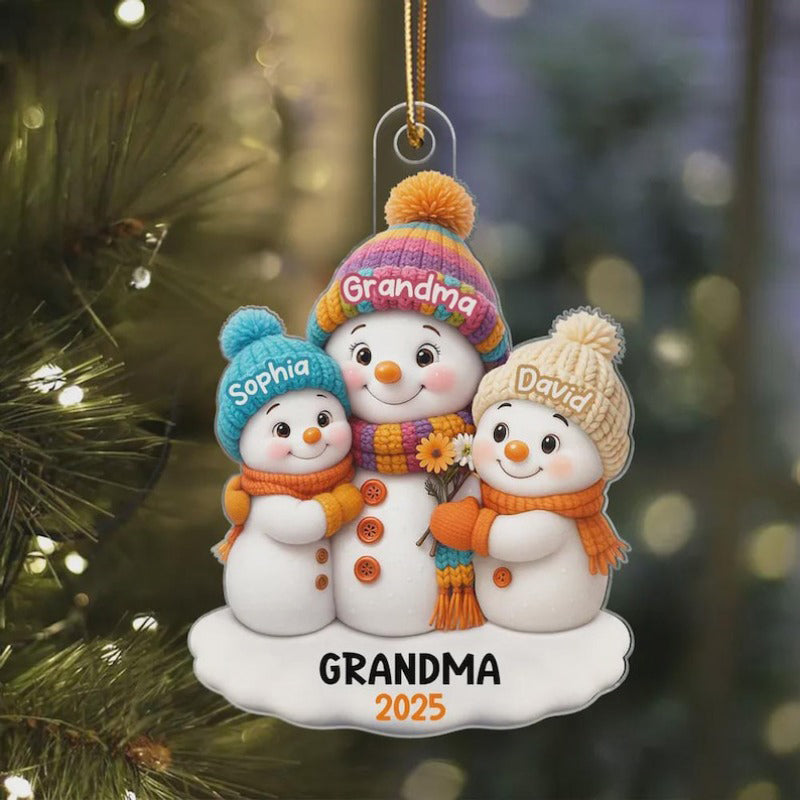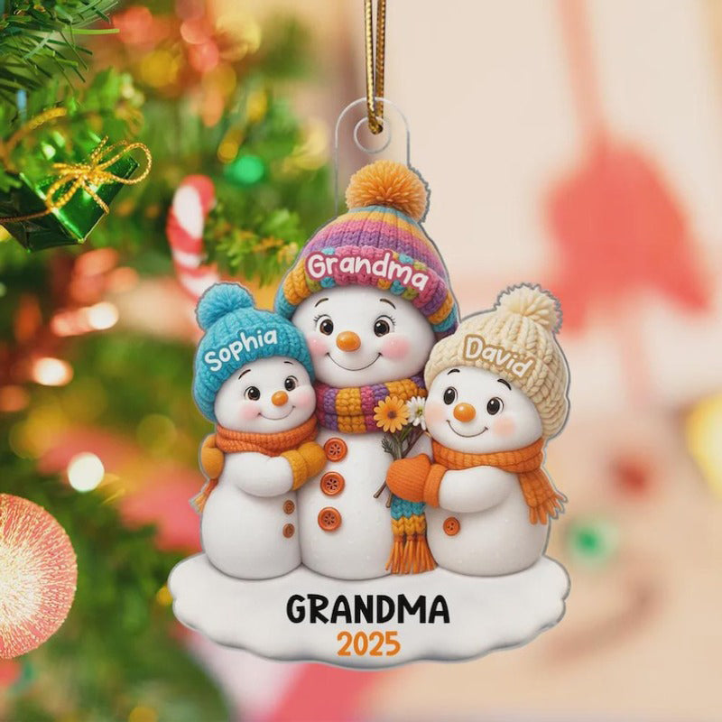 1 -8 Names Christmas Ornament, Acrylic Snowman Grandkid Ornament