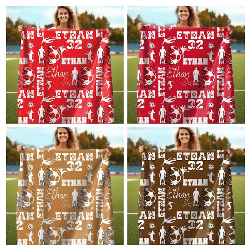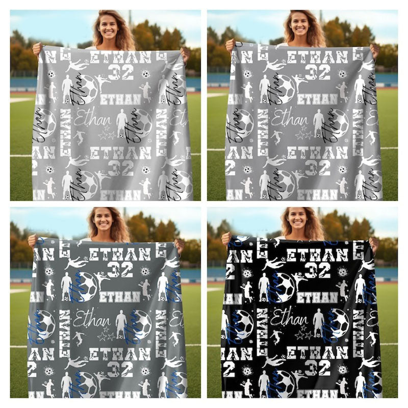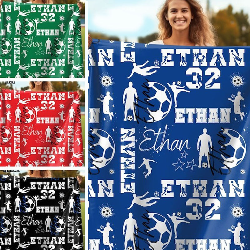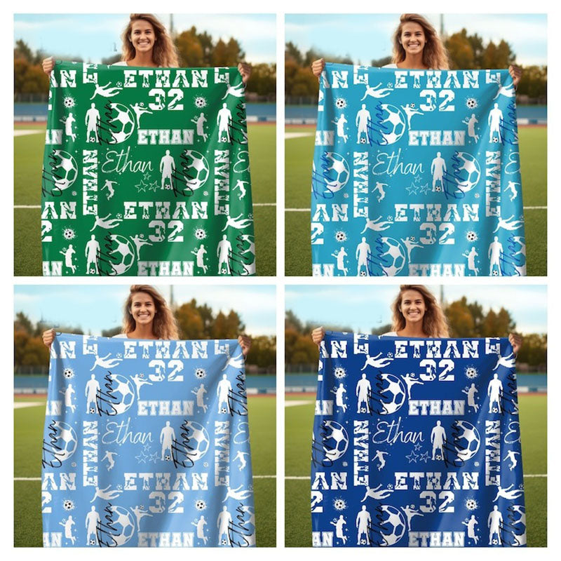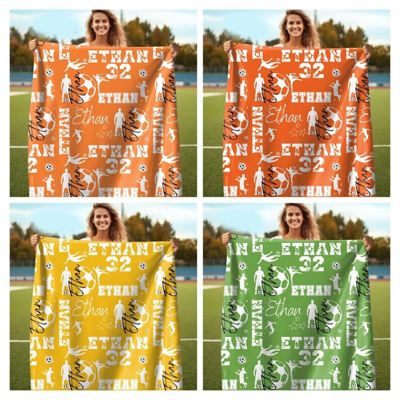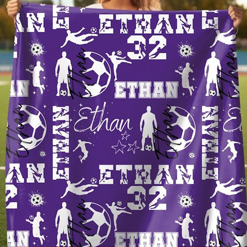 Personalized Soccer Boy Blanket, Custom Name Football Throw