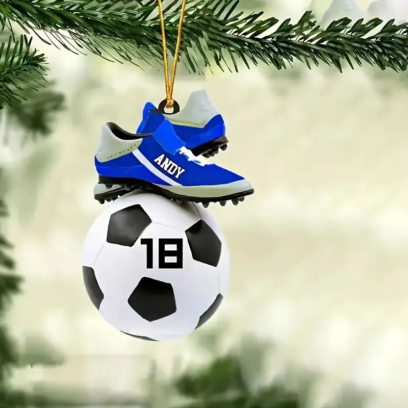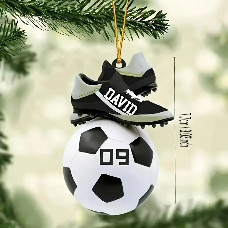 Personalized Soccer Christmas Ornament - Custom Name & Number
