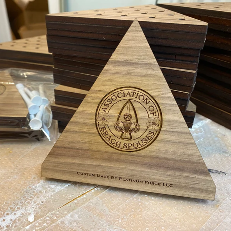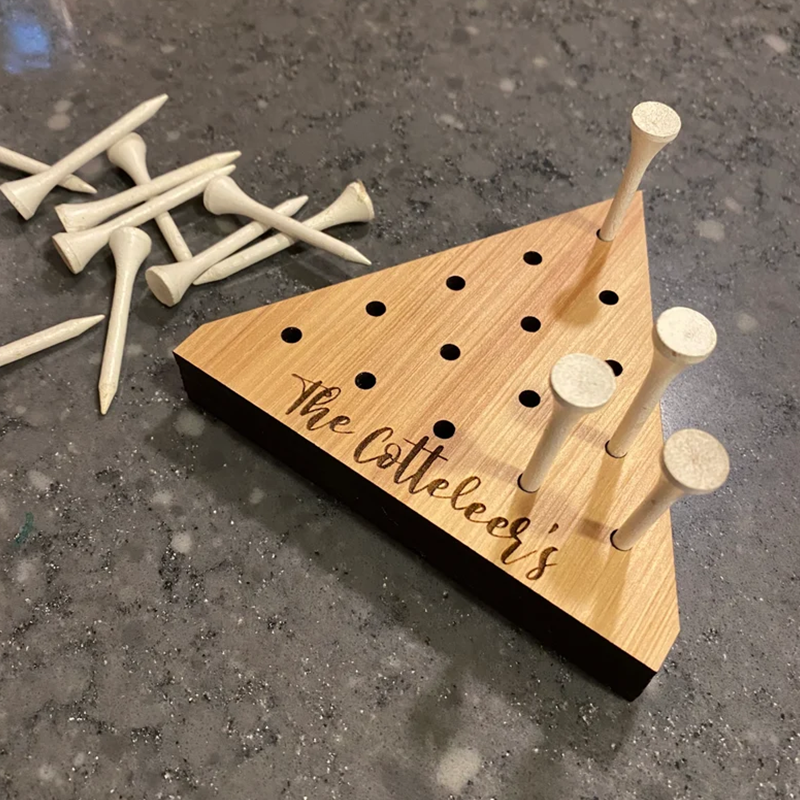 Enjoy this personalized version of the classic “tee jump” game.Available in three finish colors, you family name, business name or logo can be added to make it your own!