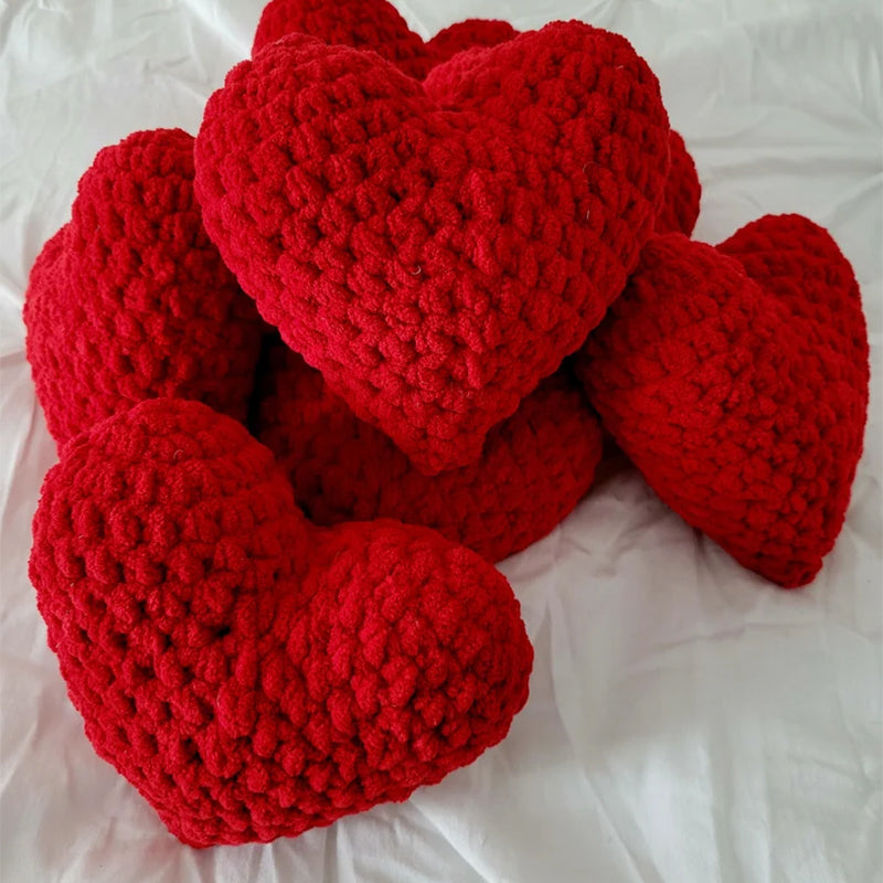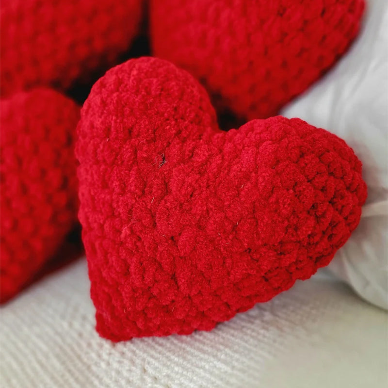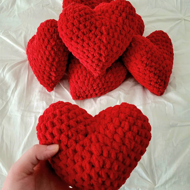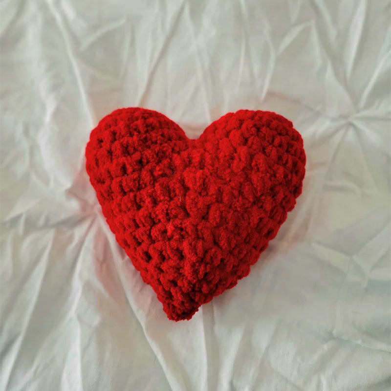 -Crochet stuffed heart that measures approximately 4" x 3" at its widest points.