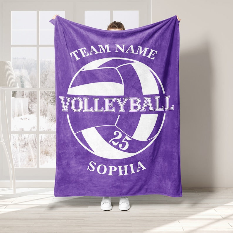 Personalized Volleyball Blanket, Custom Name Number Soft Cozy Sherpa Fleece Throw Blankets